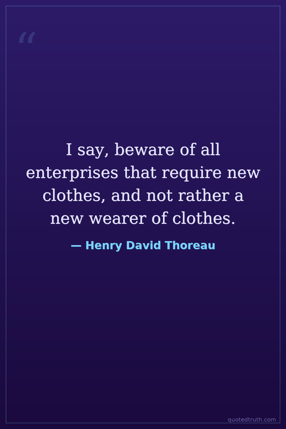 I say, beware of all enterprises that require new clothes, and not rather a new wearer of clothes.