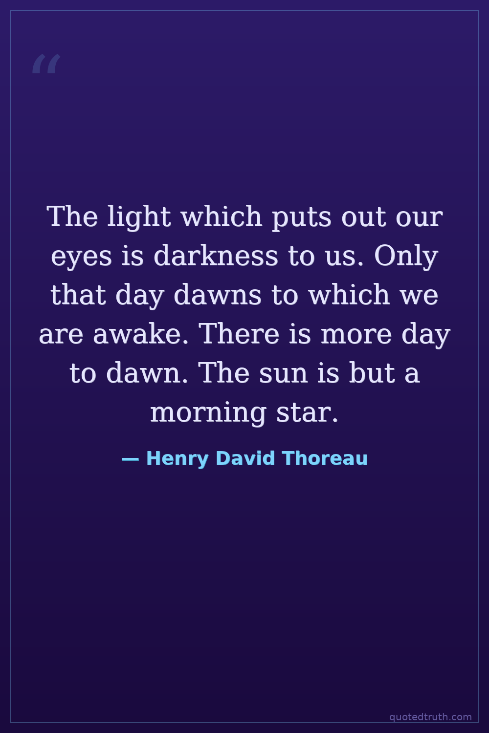 The light which puts out our eyes is darkness to us. Only that day dawns to which we are awake. There is more day to dawn. The sun is but a morning star.