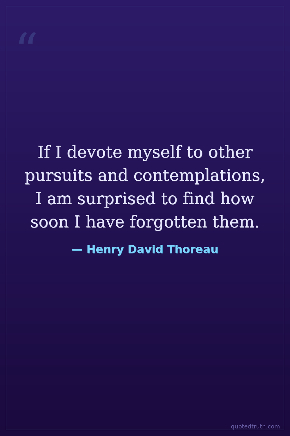 If I devote myself to other pursuits and contemplations, I am surprised to find how soon I have forgotten them.