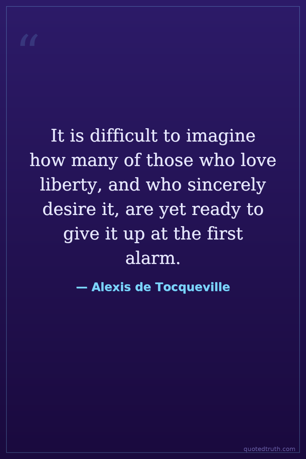 It is difficult to imagine how many of those who love liberty, and who sincerely desire it, are yet ready to give it up at the first alarm.