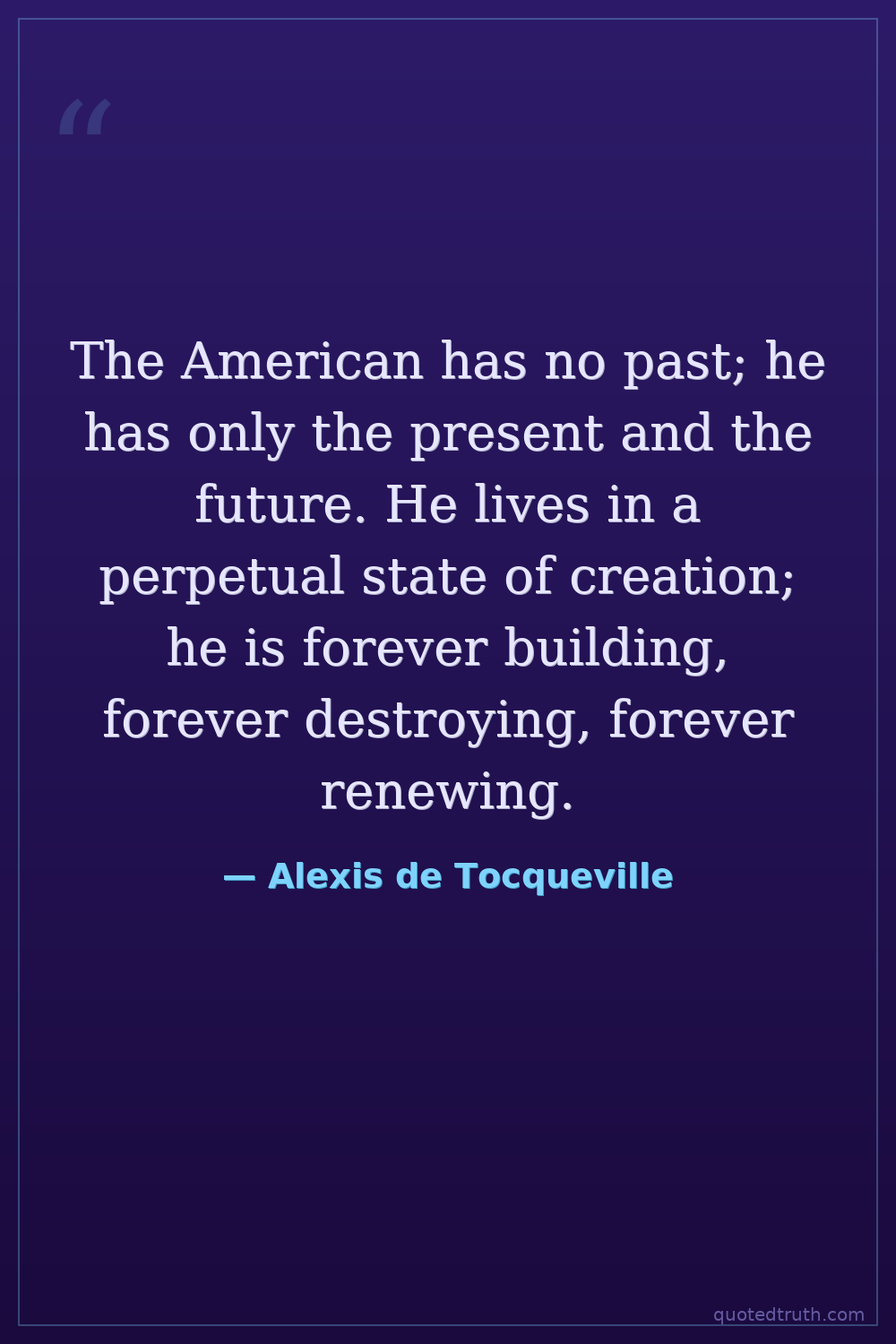 The American has no past; he has only the present and the future. He lives in a perpetual state of creation; he is forever building, forever destroying, forever renewing.