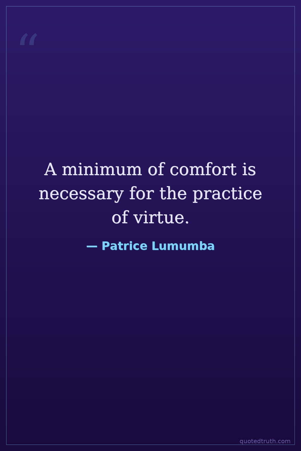 A minimum of comfort is necessary for the practice of virtue.