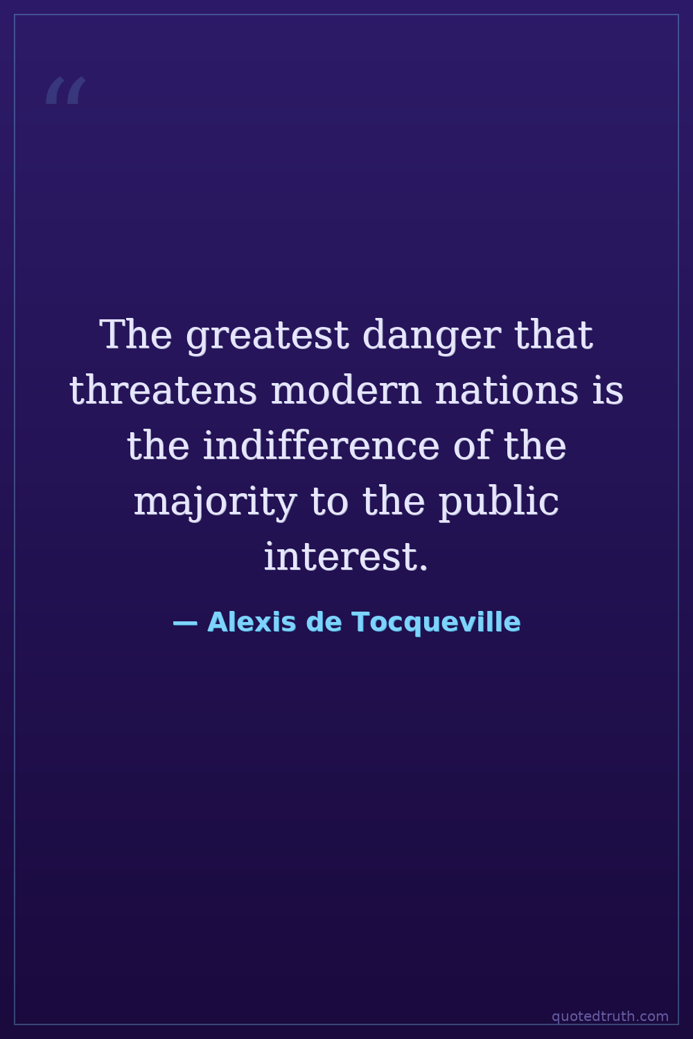 The greatest danger that threatens modern nations is the indifference of the majority to the public interest.