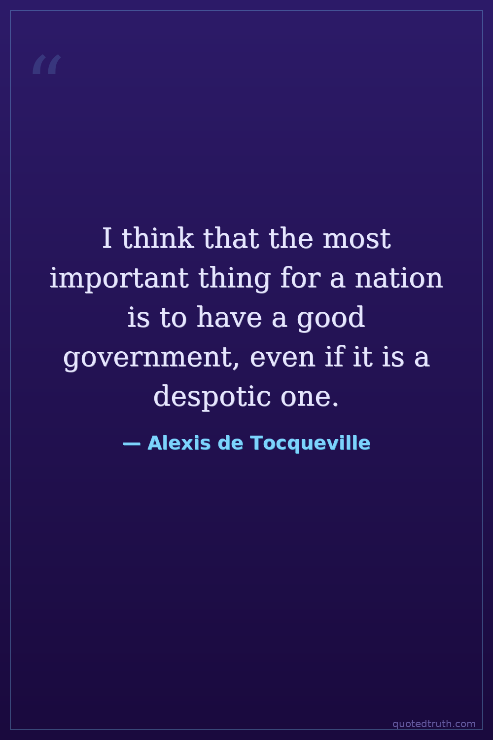 I think that the most important thing for a nation is to have a good government, even if it is a despotic one.
