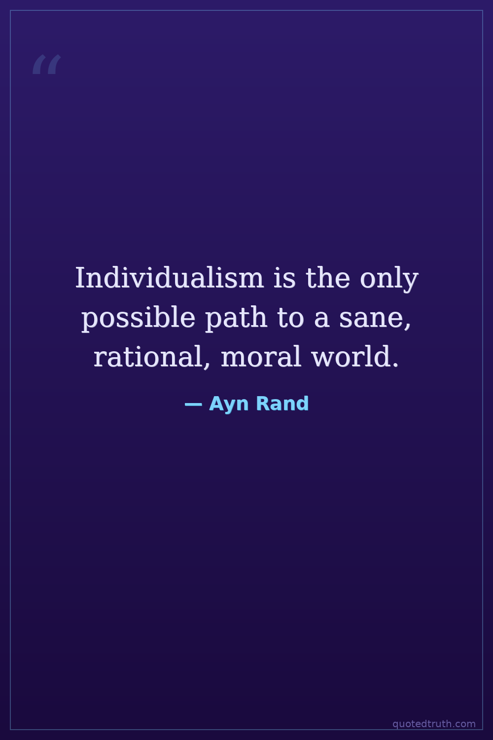 Individualism is the only possible path to a sane, rational, moral world.