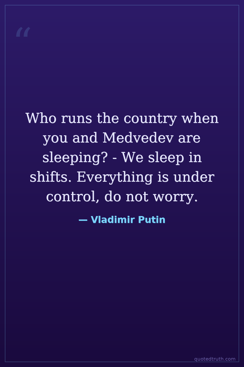 Who runs the country when you and Medvedev are sleeping? - We sleep in shifts. Everything is under control, do not worry.