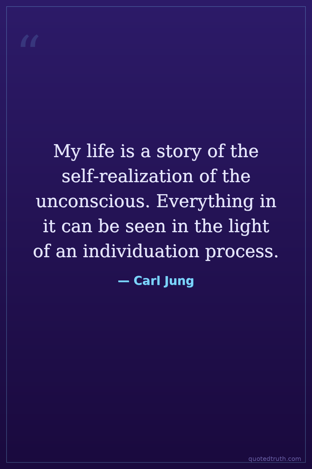 My life is a story of the self-realization of the unconscious. Everything in it can be seen in the light of an individuation process.