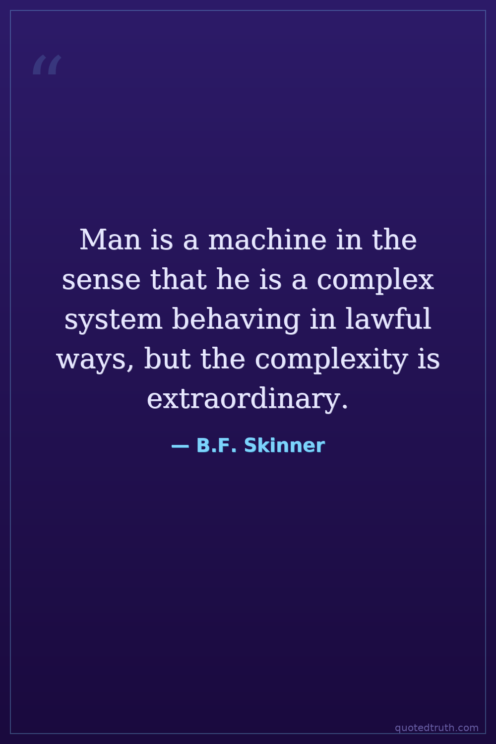 Man is a machine in the sense that he is a complex system behaving in lawful ways, but the complexity is extraordinary.