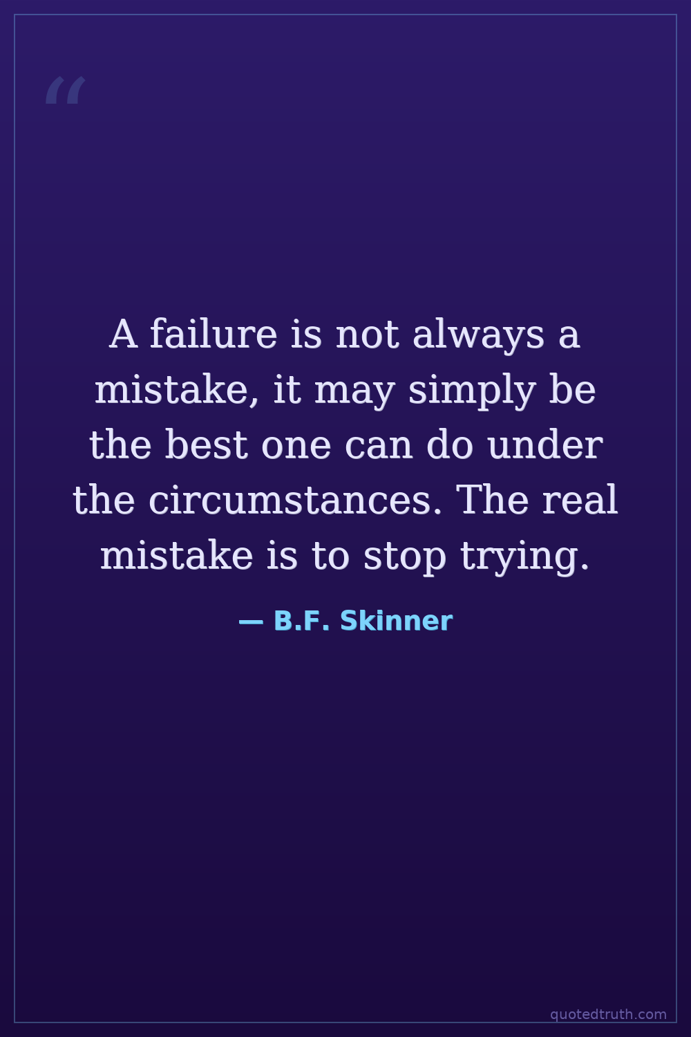 A failure is not always a mistake, it may simply be the best one can do under the circumstances. The real mistake is to stop trying.