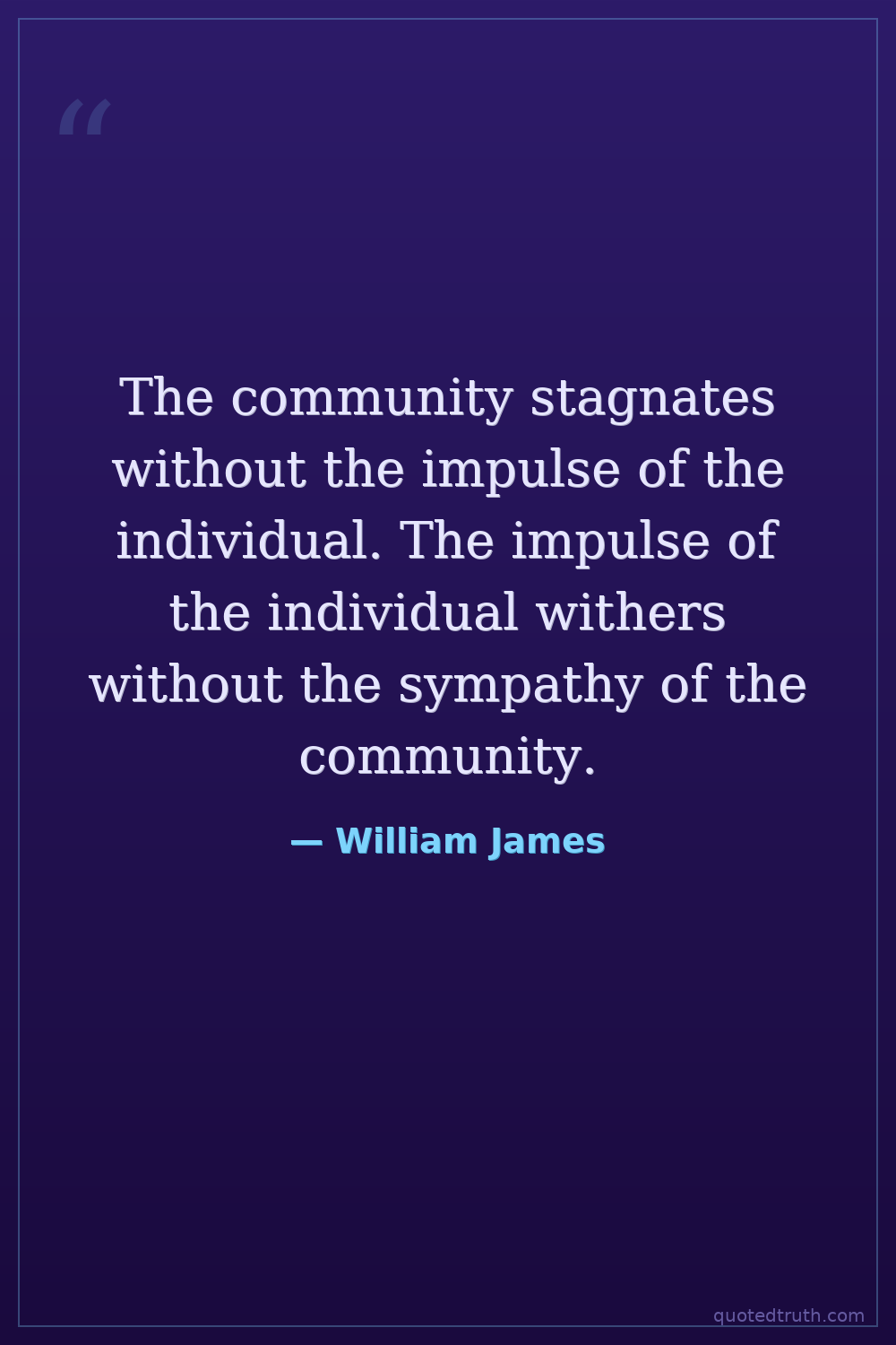 The community stagnates without the impulse of the individual. The impulse of the individual withers without the sympathy of the community.