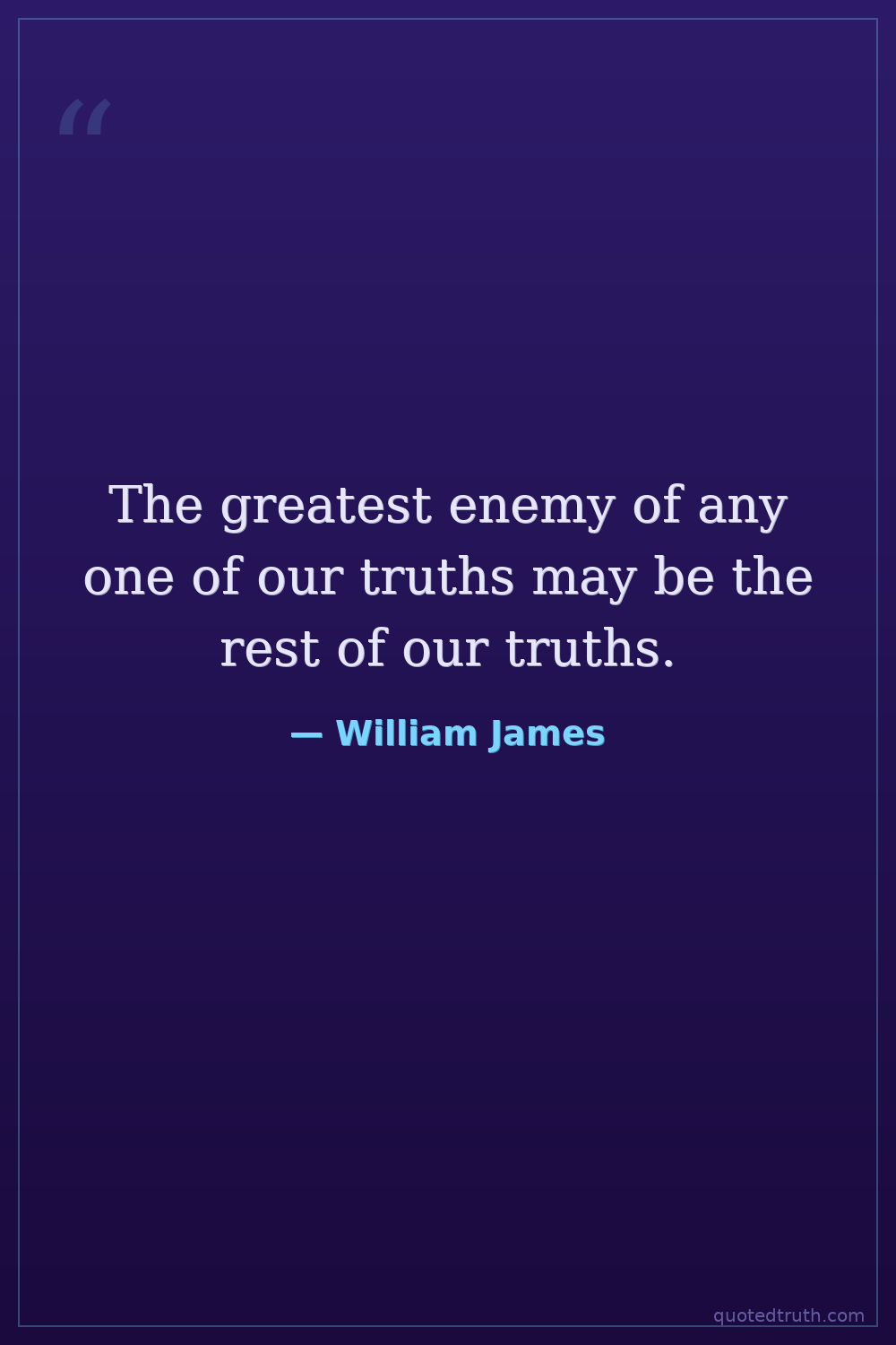The greatest enemy of any one of our truths may be the rest of our truths.