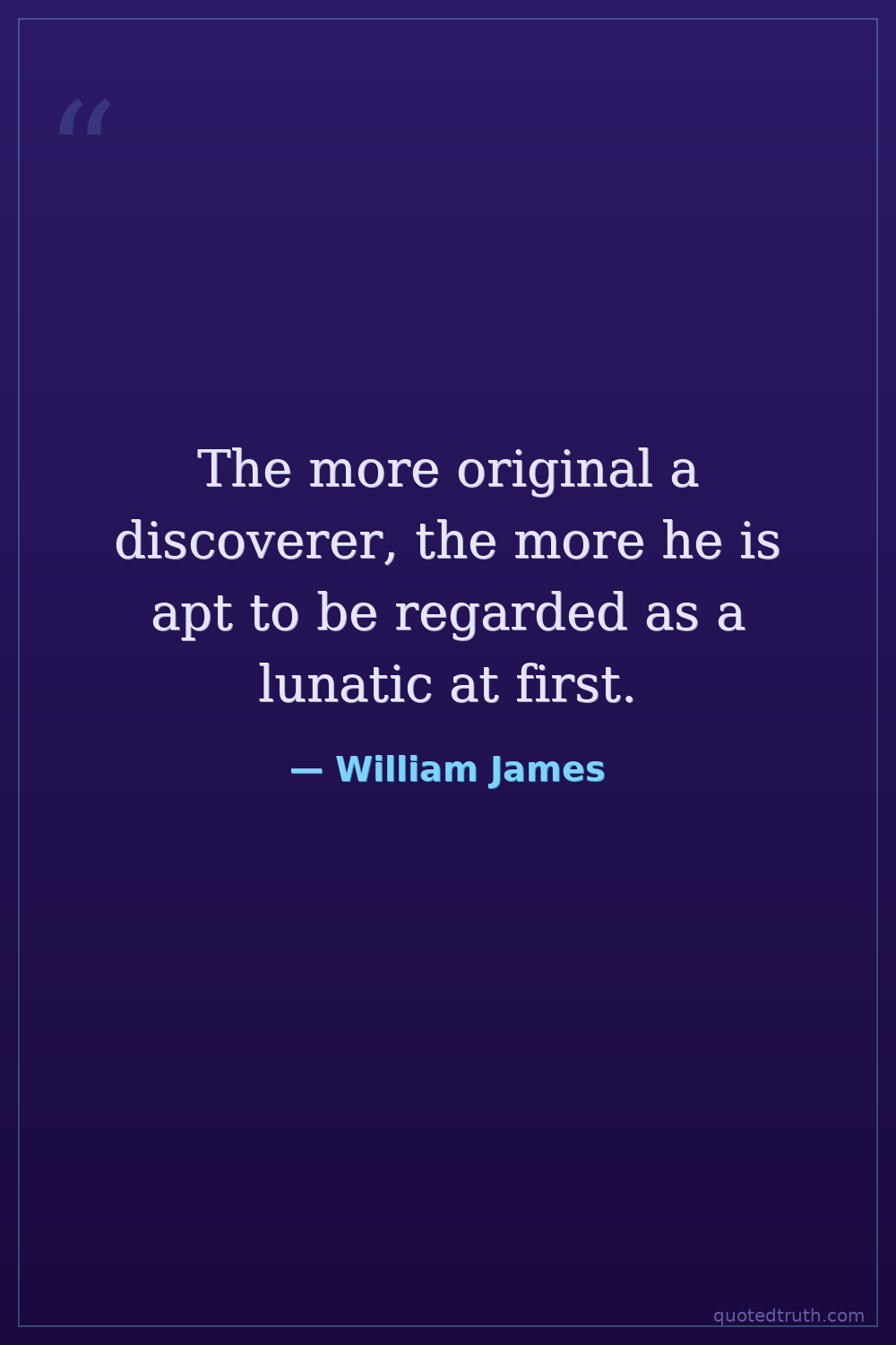 The more original a discoverer, the more he is apt to be regarded as a lunatic at first.