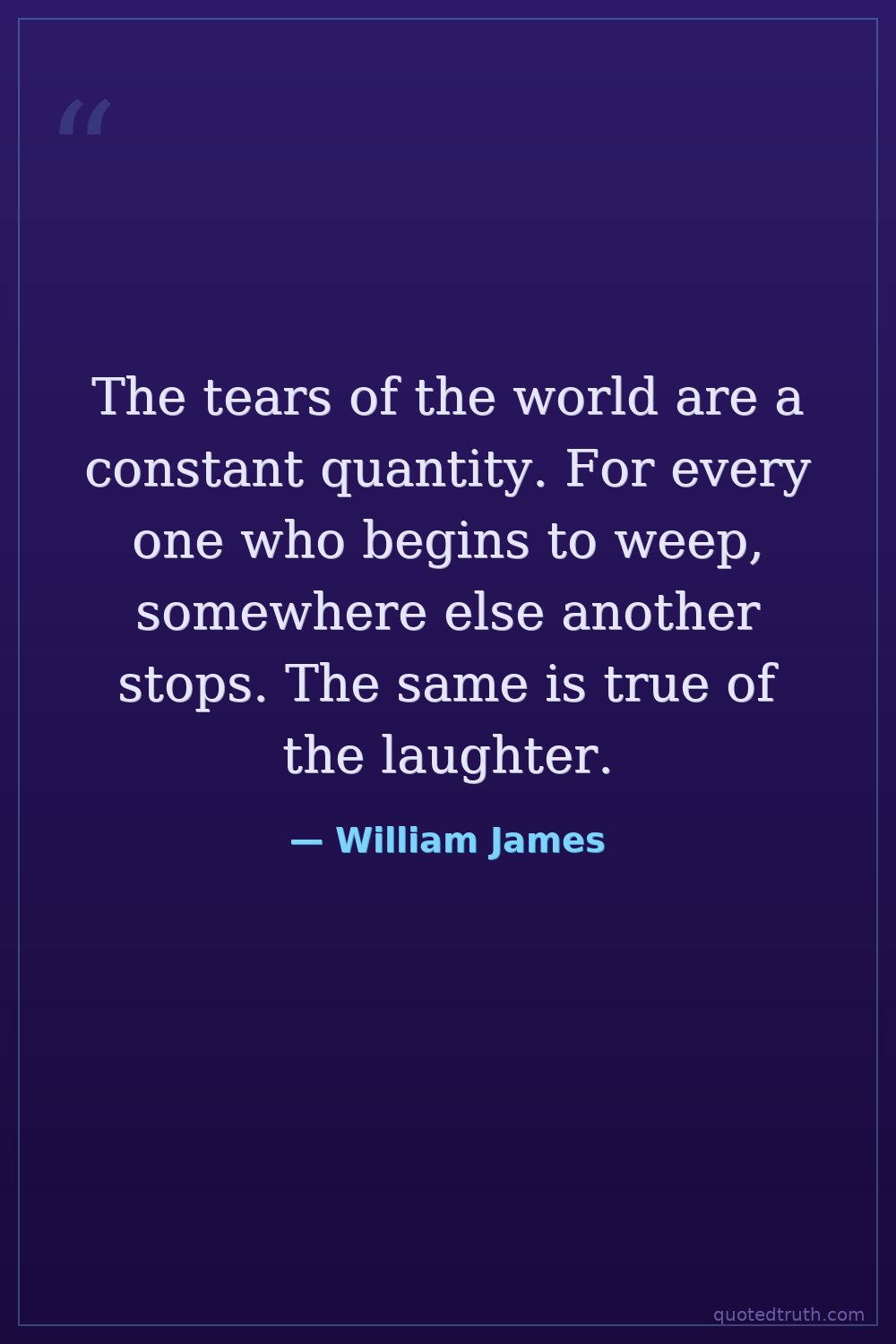 The tears of the world are a constant quantity. For every one who begins to weep, somewhere else another stops. The same is true of the laughter.