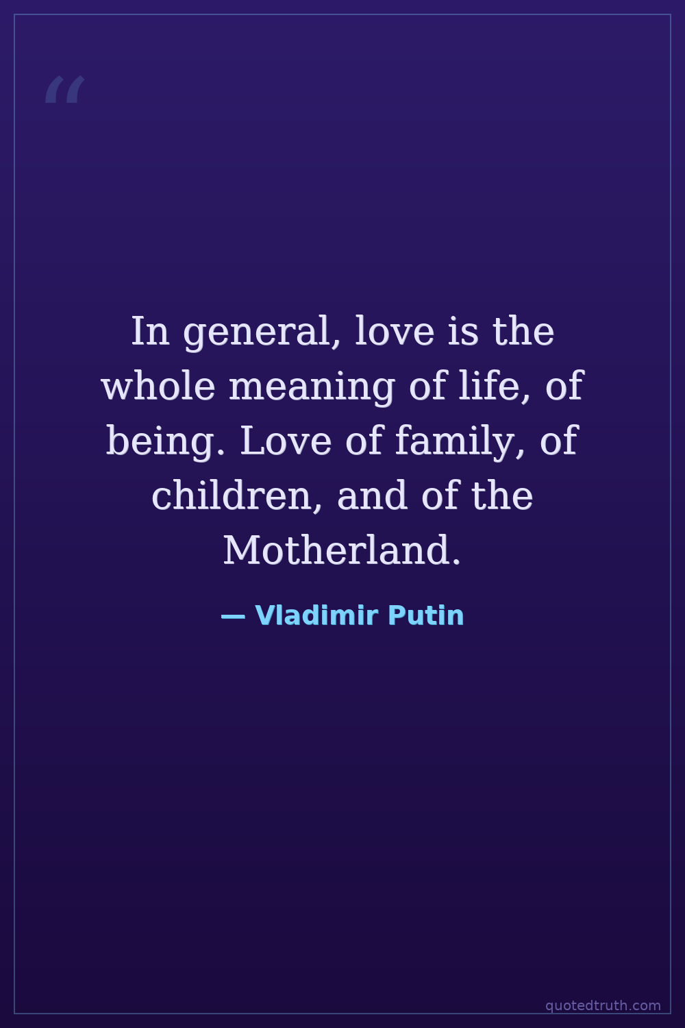 In general, love is the whole meaning of life, of being. Love of family, of children, and of the Motherland.