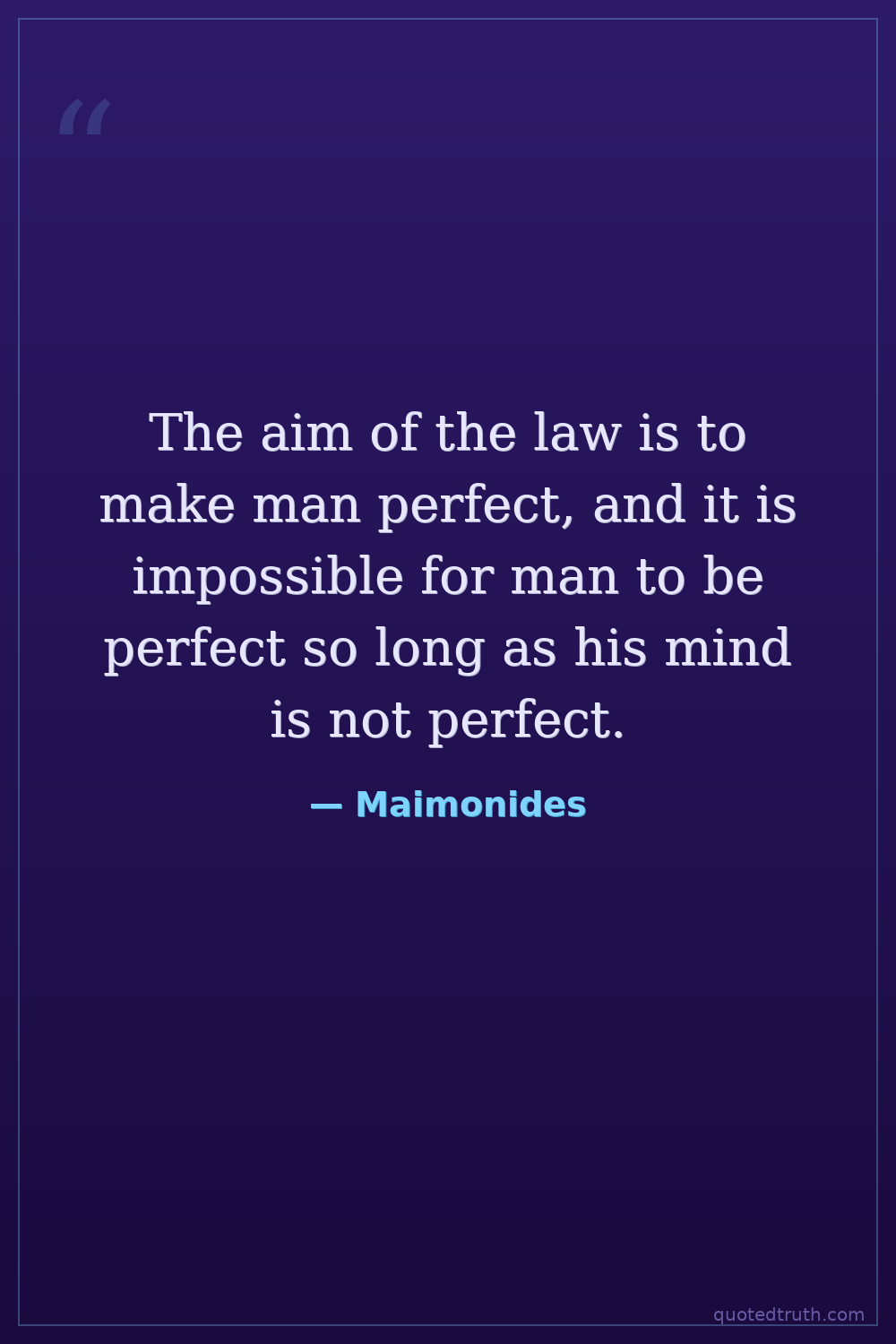 The aim of the law is to make man perfect, and it is impossible for man to be perfect so long as his mind is not perfect.