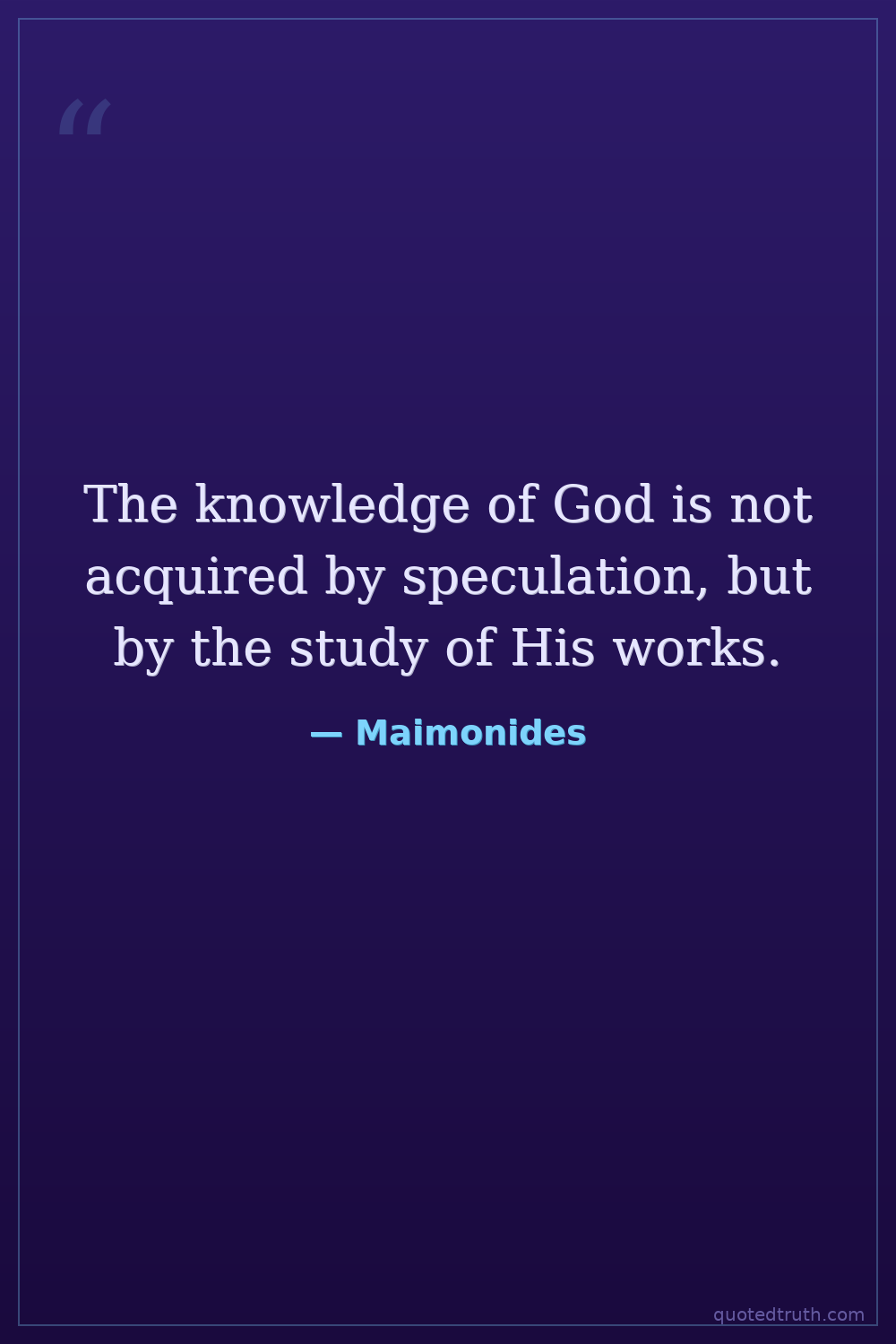 The knowledge of God is not acquired by speculation, but by the study of His works.