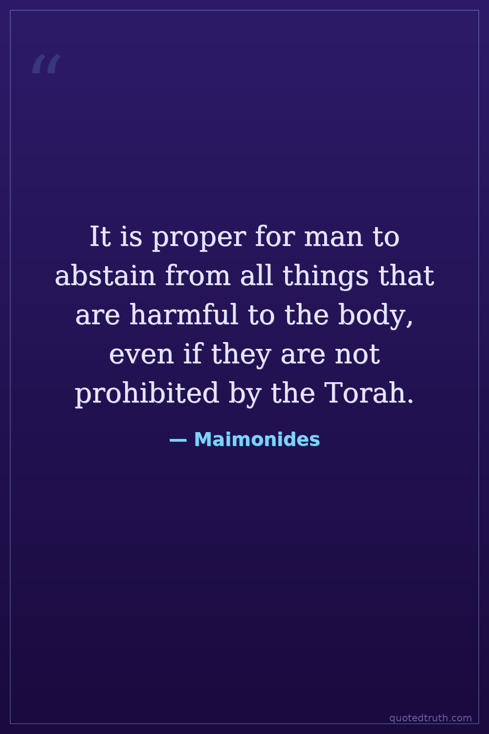 It is proper for man to abstain from all things that are harmful to the body, even if they are not prohibited by the Torah.