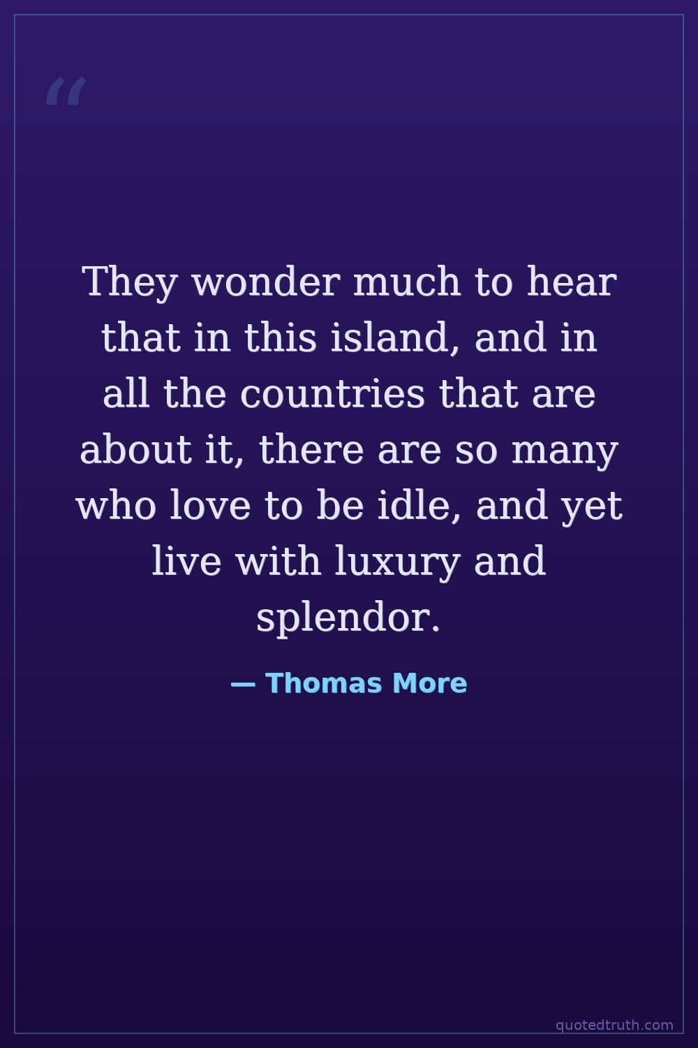 They wonder much to hear that in this island, and in all the countries that are about it, there are so many who love to be idle, and yet live with luxury and splendor.