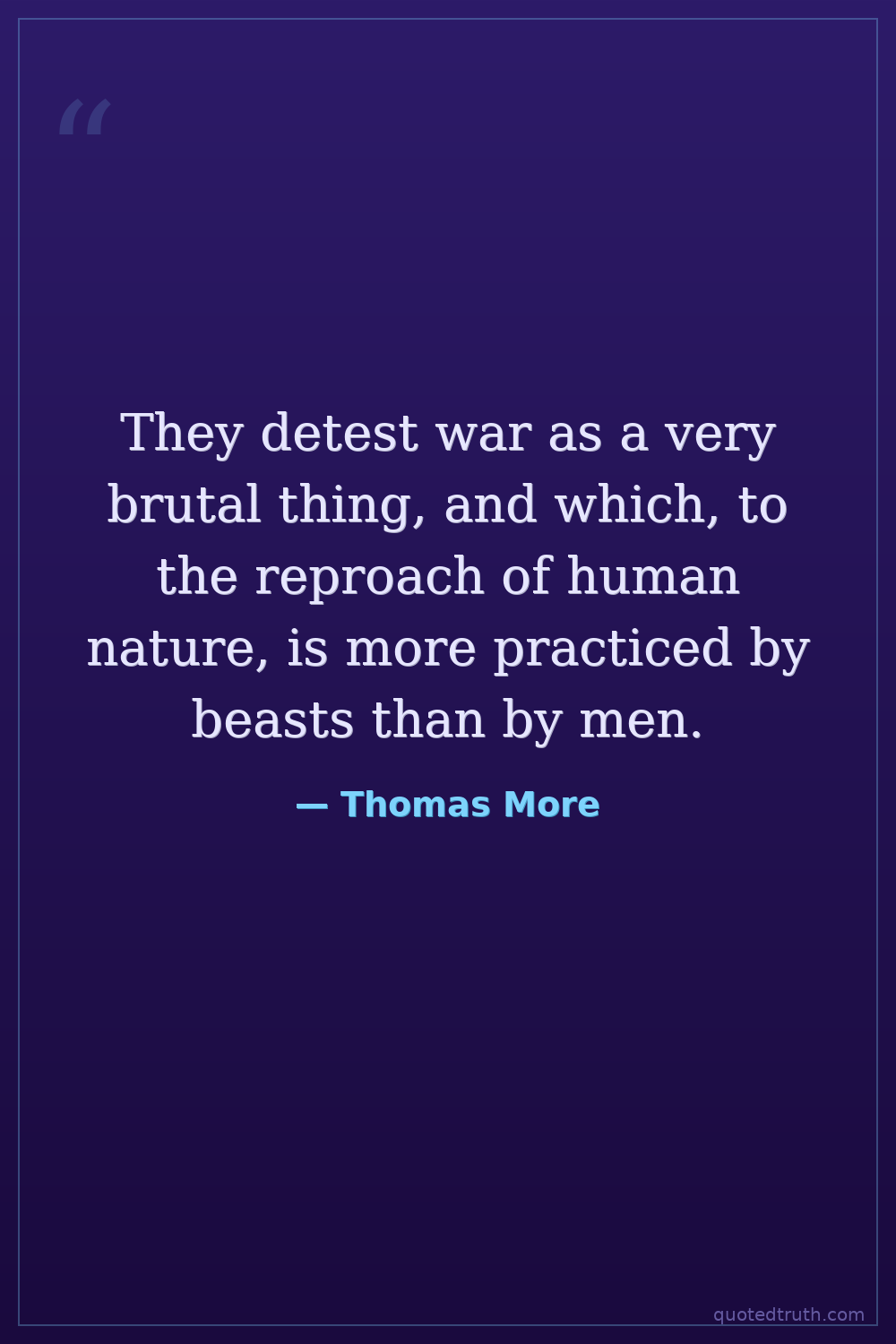 They detest war as a very brutal thing, and which, to the reproach of human nature, is more practiced by beasts than by men.