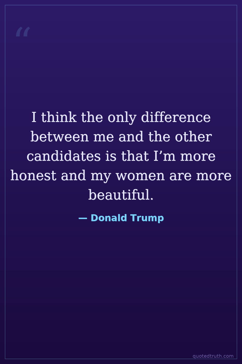 I think the only difference between me and the other candidates is that I’m more honest and my women are more beautiful.