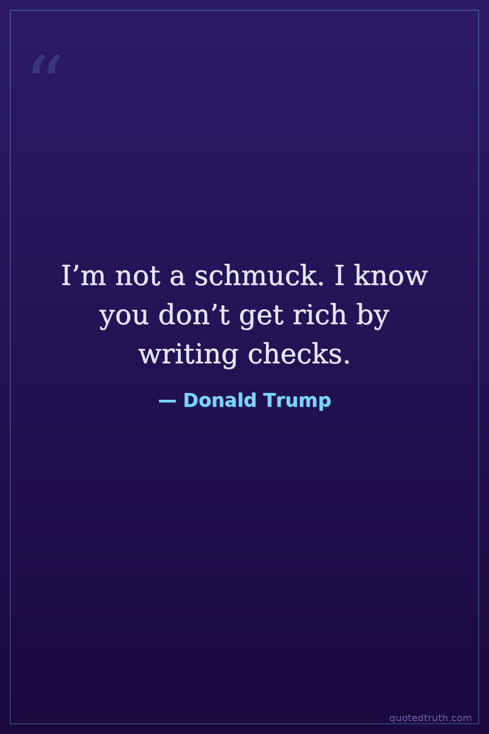 I’m not a schmuck. I know you don’t get rich by writing checks.