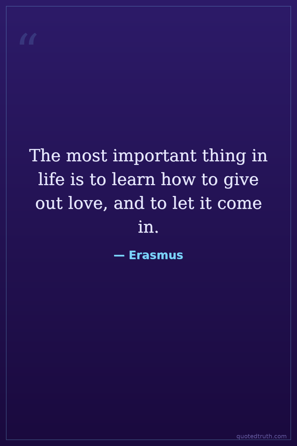 The most important thing in life is to learn how to give out love, and to let it come in.