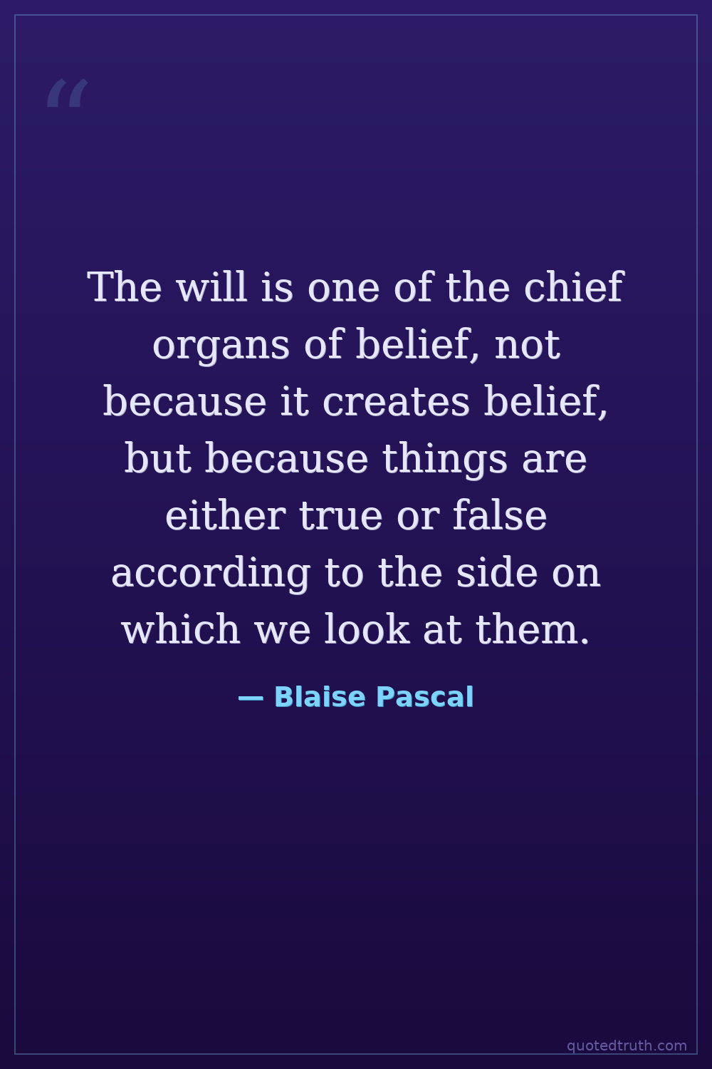The will is one of the chief organs of belief, not because it creates belief, but because things are either true or false according to the side on which we look at them.