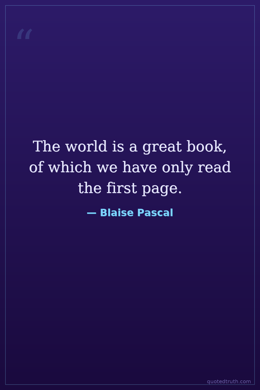 The world is a great book, of which we have only read the first page.