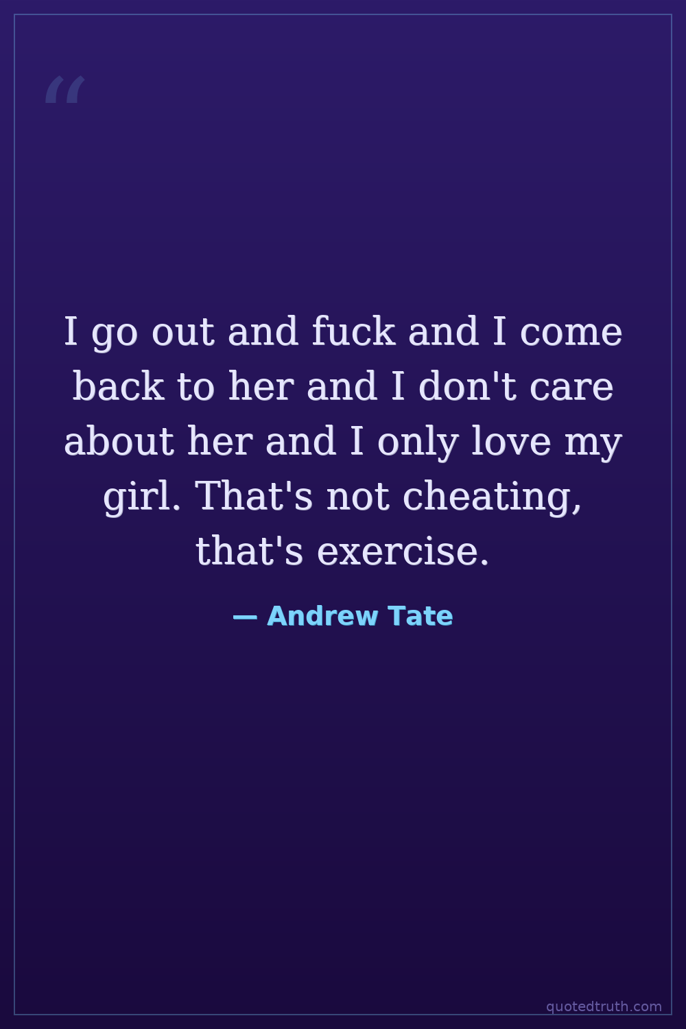 I go out and fuck and I come back to her and I don't care about her and I only love my girl. That's not cheating, that's exercise.