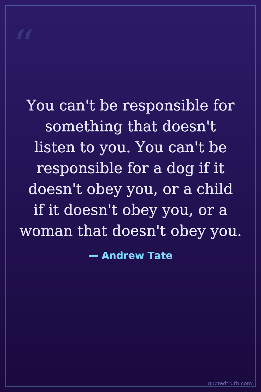 You can't be responsible for something that doesn't listen to you. You can't be responsible for a dog if it doesn't obey you, or a child if it doesn't obey you, or a woman that doesn't obey you.