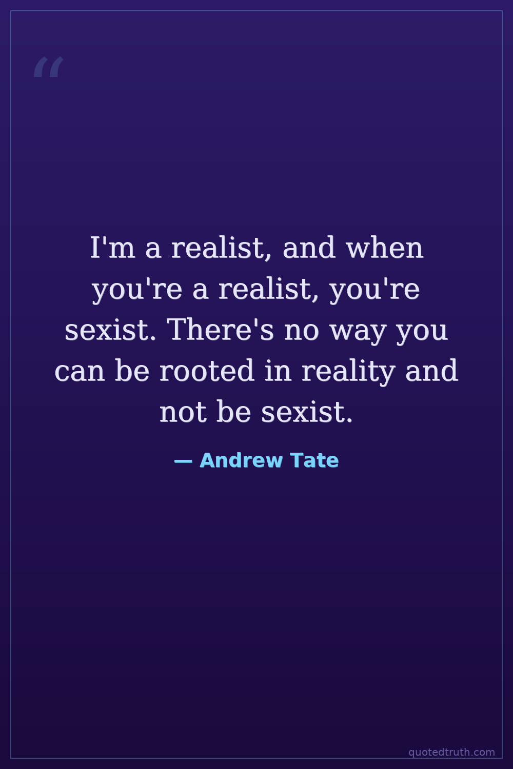 I'm a realist, and when you're a realist, you're sexist. There's no way you can be rooted in reality and not be sexist.