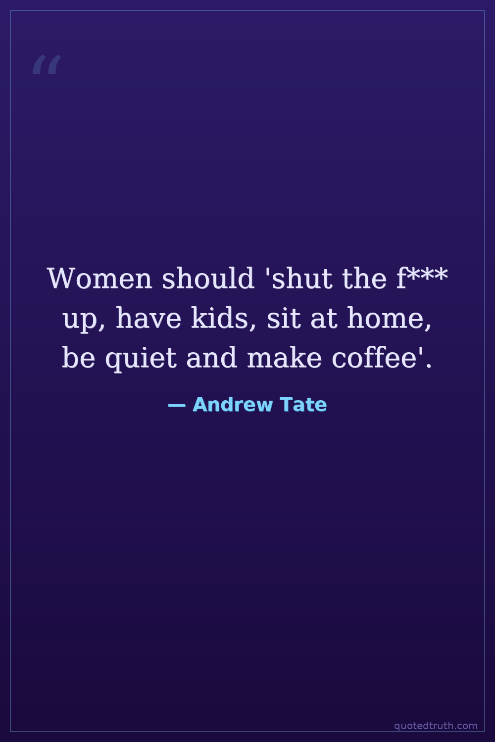 Women should 'shut the f*** up, have kids, sit at home, be quiet and make coffee'.