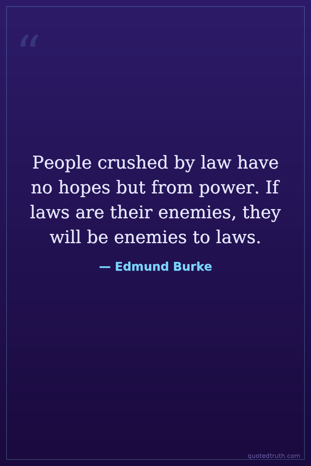 People crushed by law have no hopes but from power. If laws are their enemies, they will be enemies to laws.