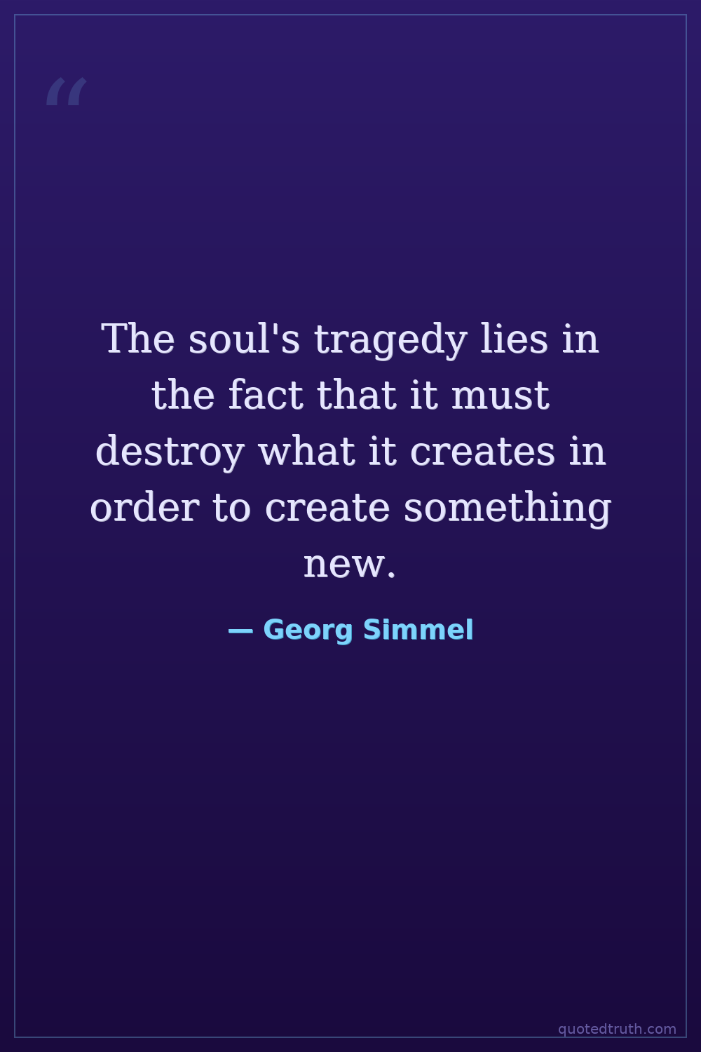 The soul's tragedy lies in the fact that it must destroy what it creates in order to create something new.