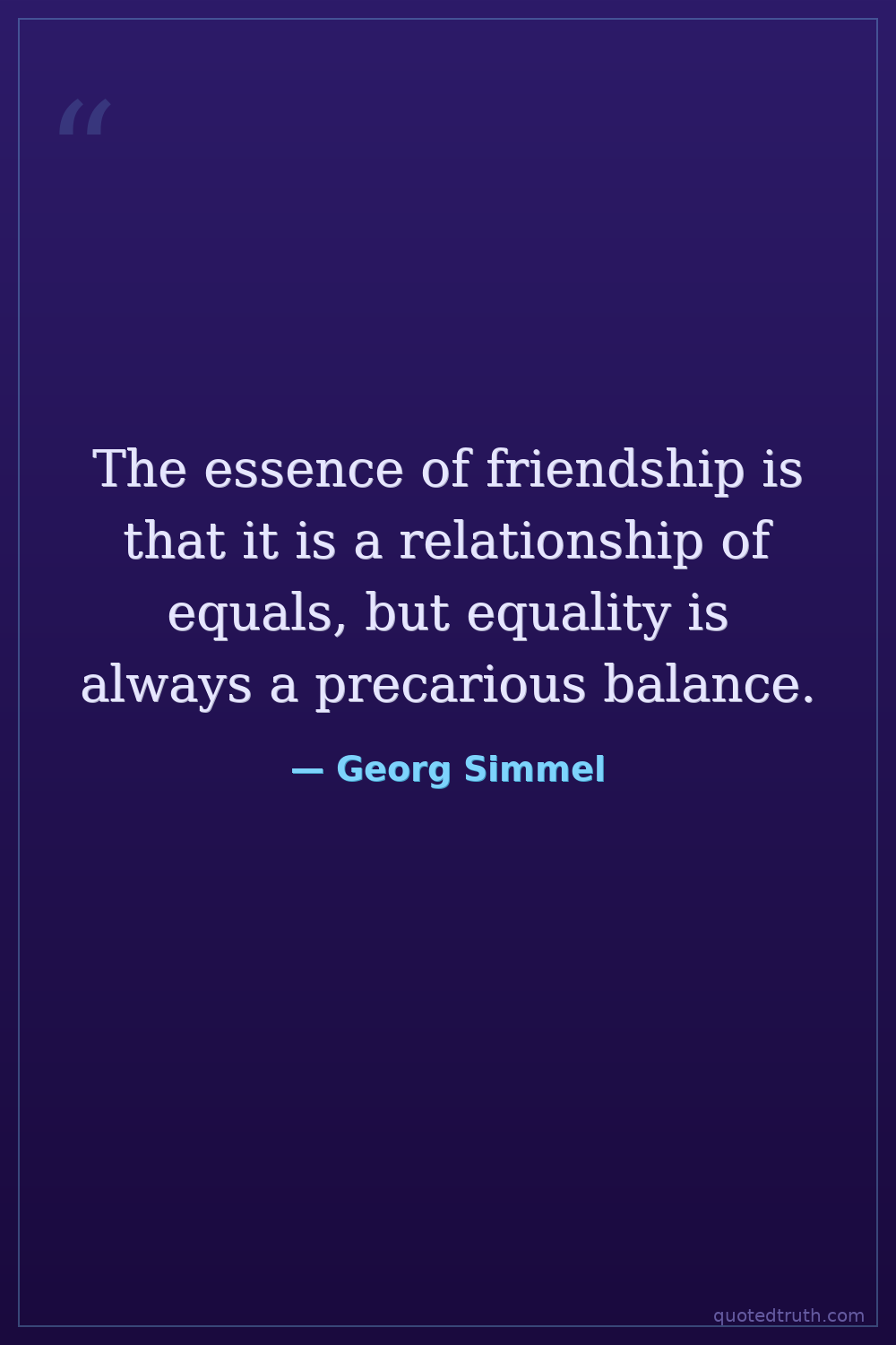 The essence of friendship is that it is a relationship of equals, but equality is always a precarious balance.