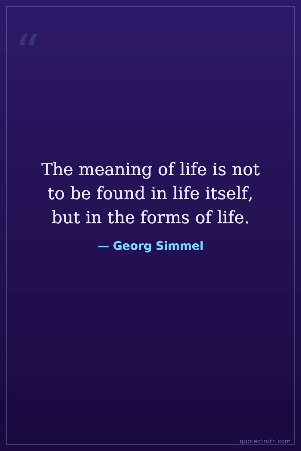 The meaning of life is not to be found in life itself, but in the forms of life.