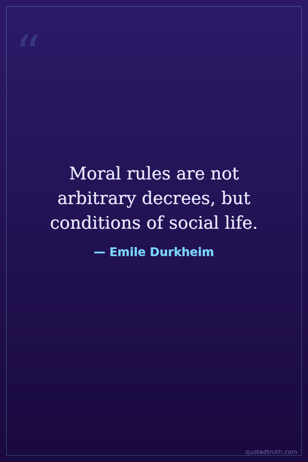 Moral rules are not arbitrary decrees, but conditions of social life.