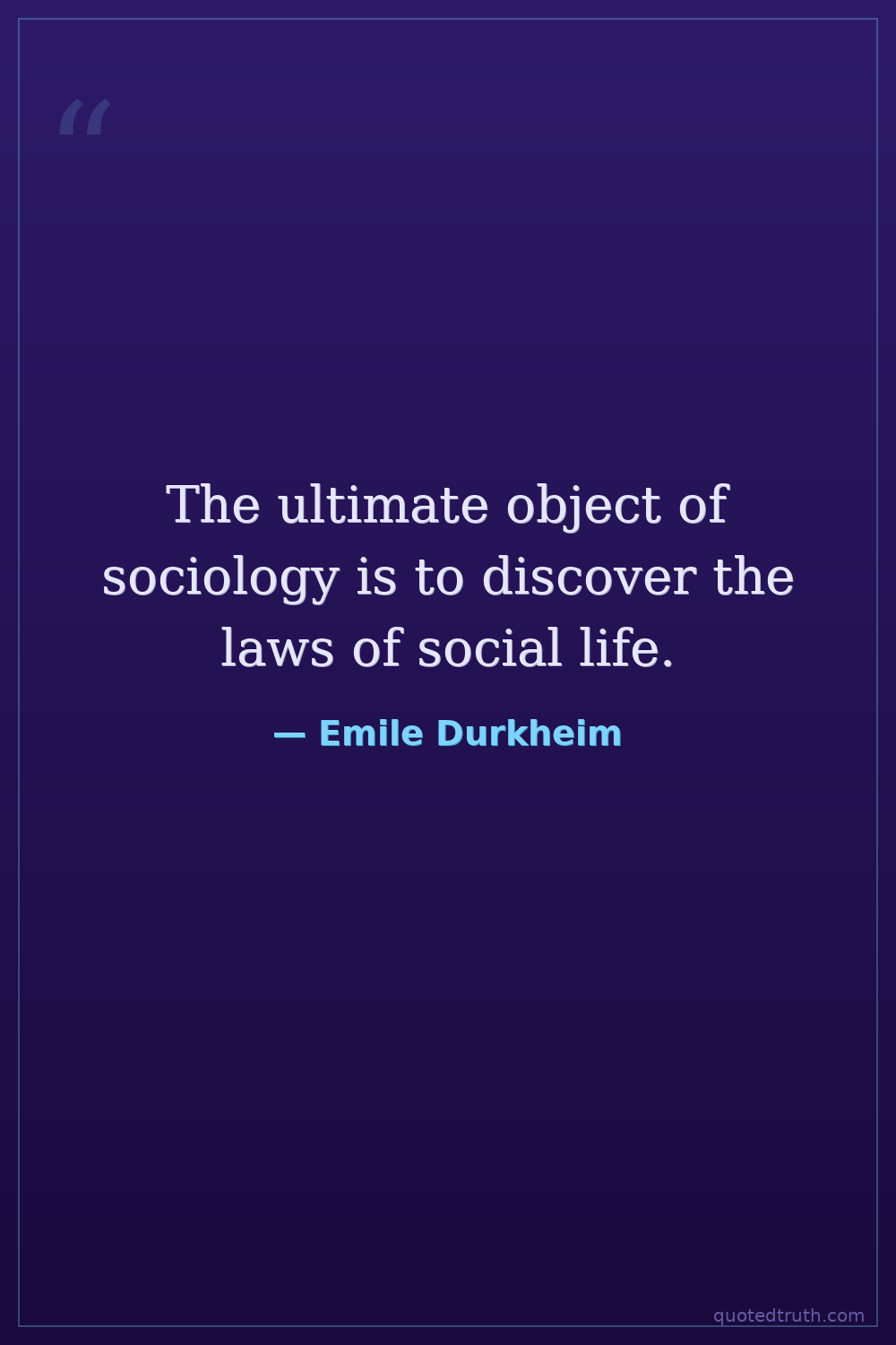The ultimate object of sociology is to discover the laws of social life.