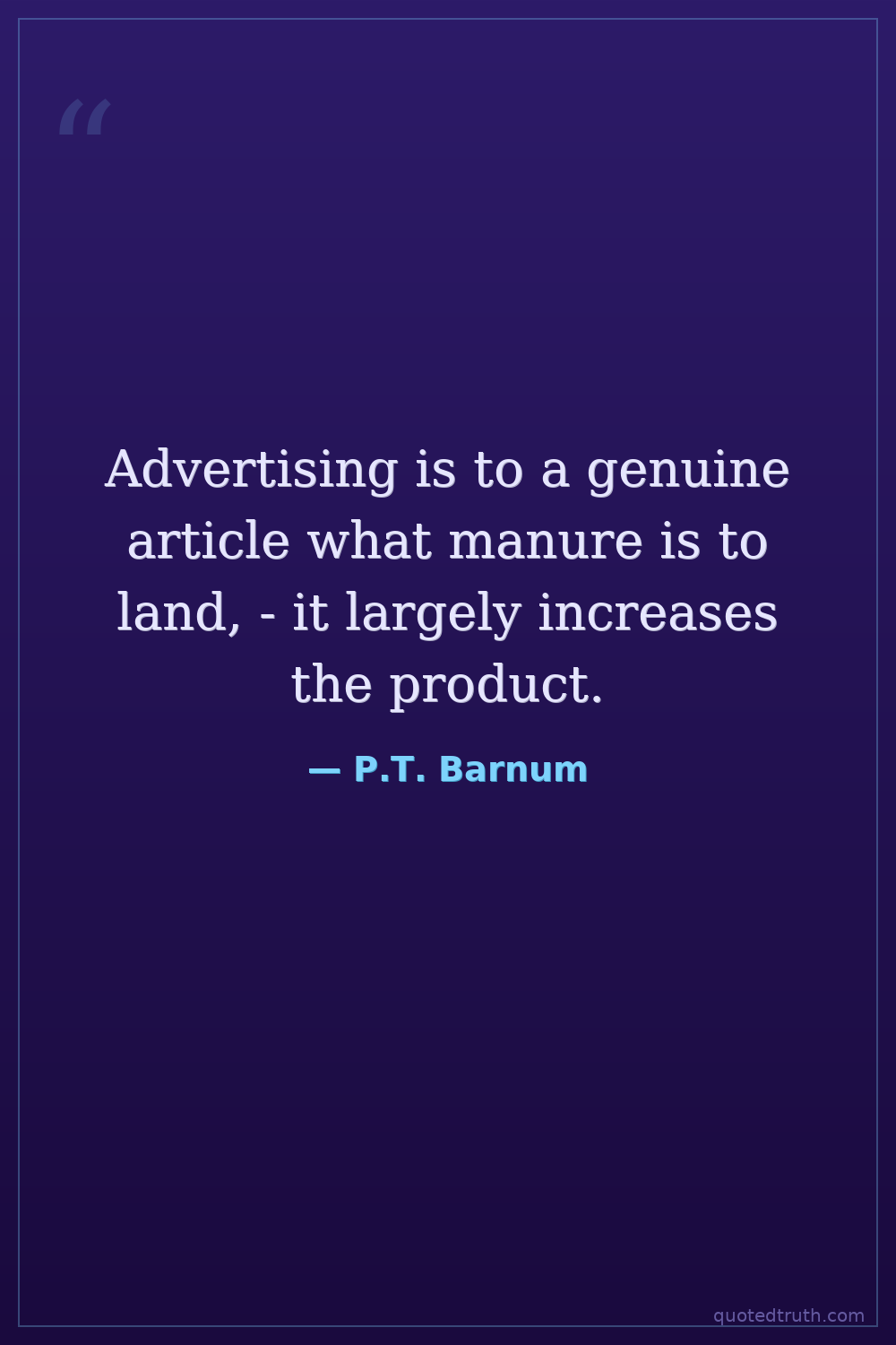 Advertising is to a genuine article what manure is to land, - it largely increases the product.