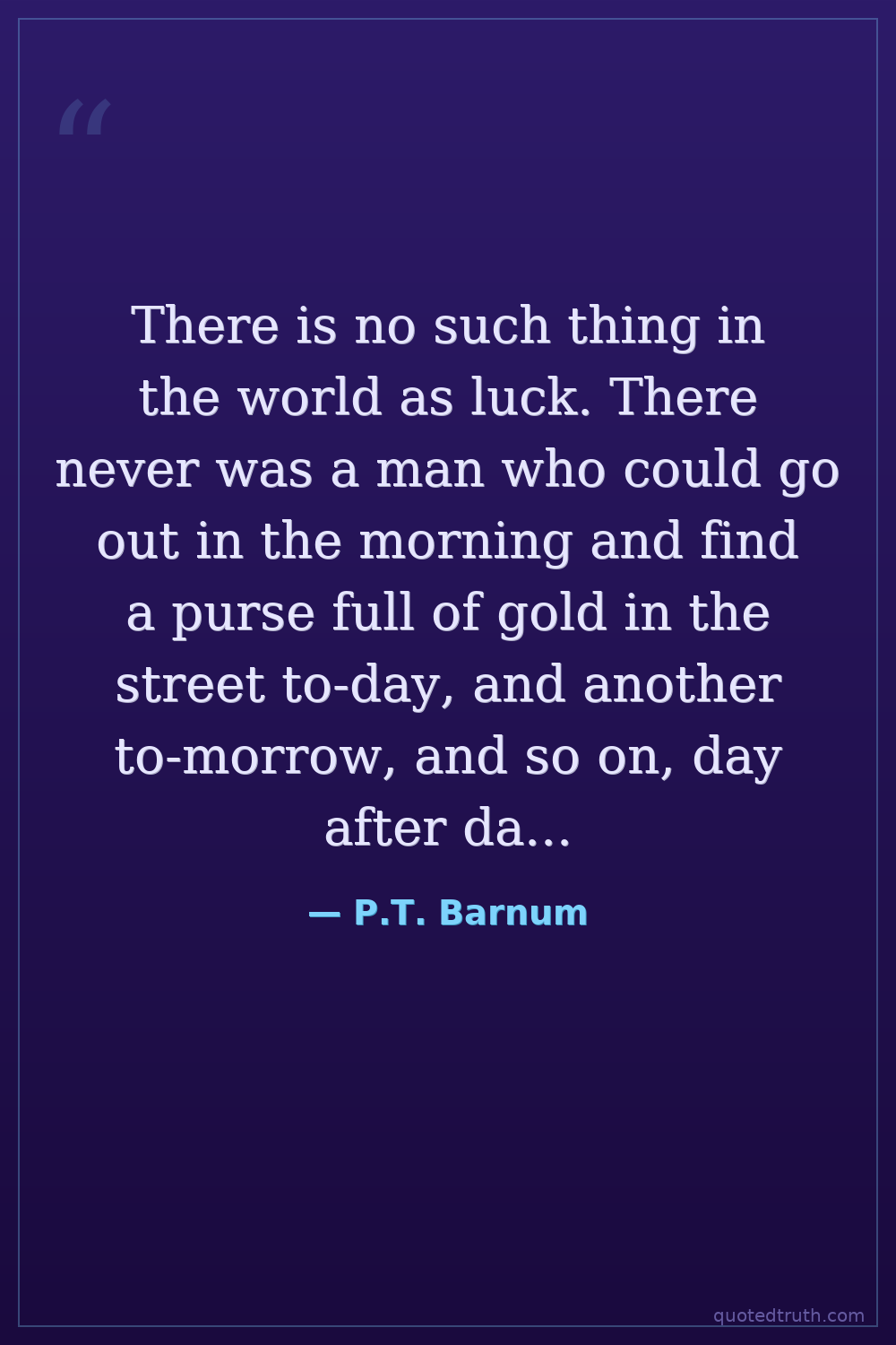 There is no such thing in the world as luck. There never was a man who could go out in the morning and find a purse full of gold in the street to-day, and another to-morrow, and so on, day after day: He may do so once in his life; but so far as...
