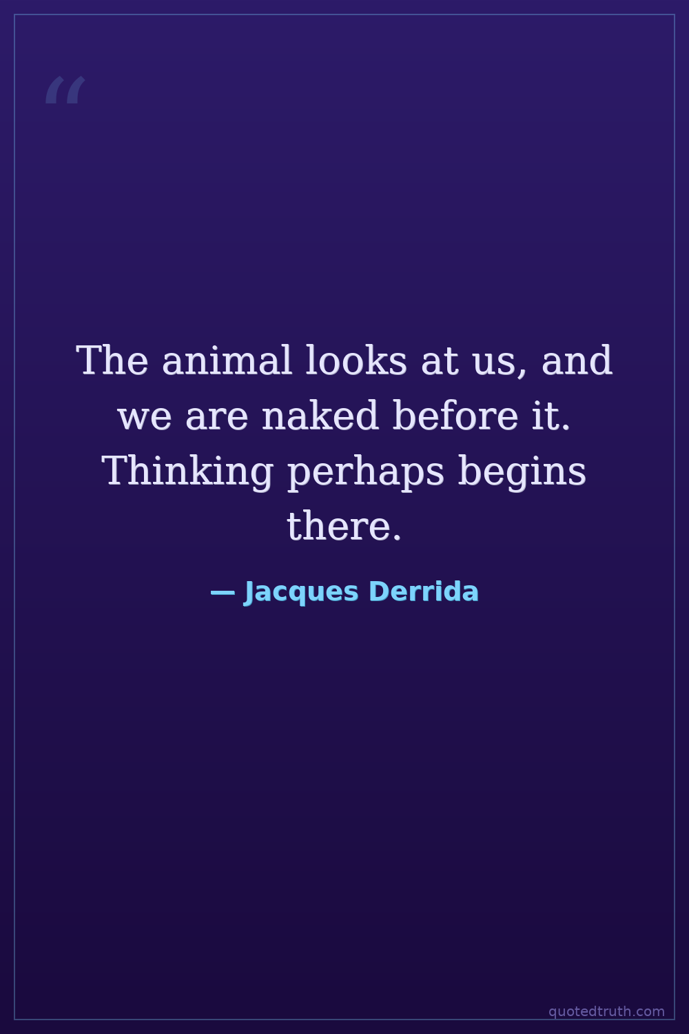 The animal looks at us, and we are naked before it. Thinking perhaps begins there.