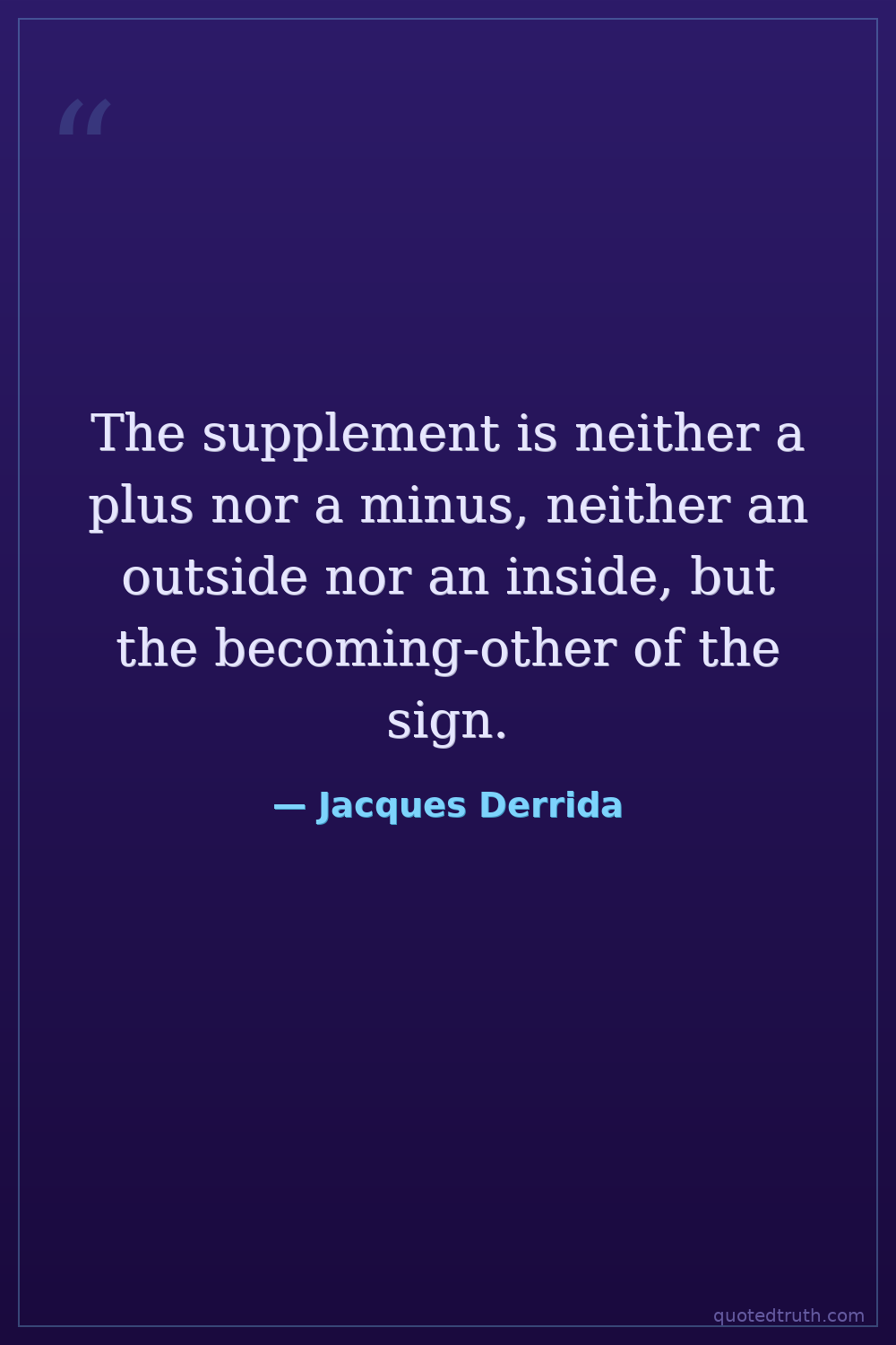 The supplement is neither a plus nor a minus, neither an outside nor an inside, but the becoming-other of the sign.