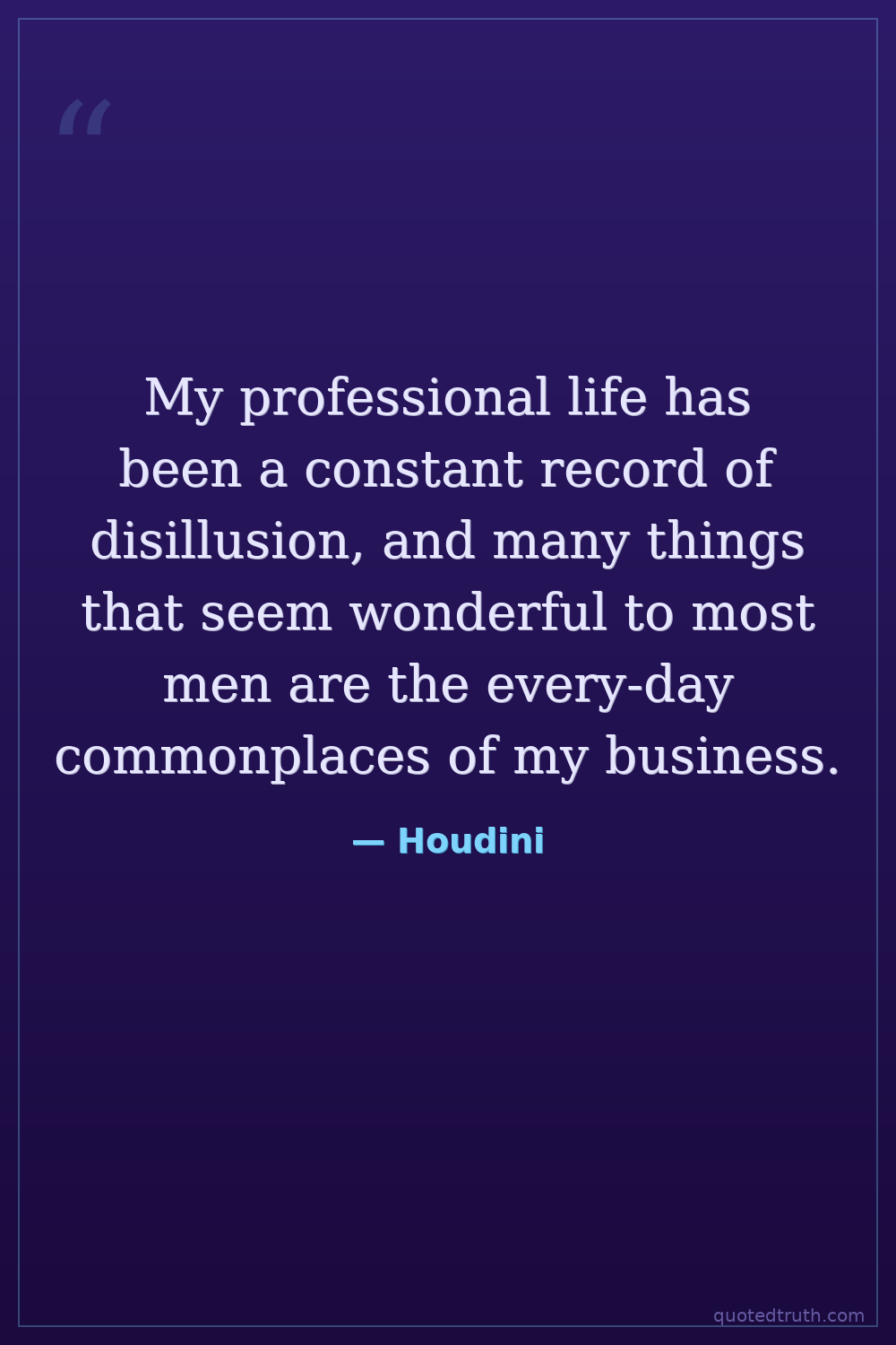 My professional life has been a constant record of disillusion, and many things that seem wonderful to most men are the every-day commonplaces of my business.