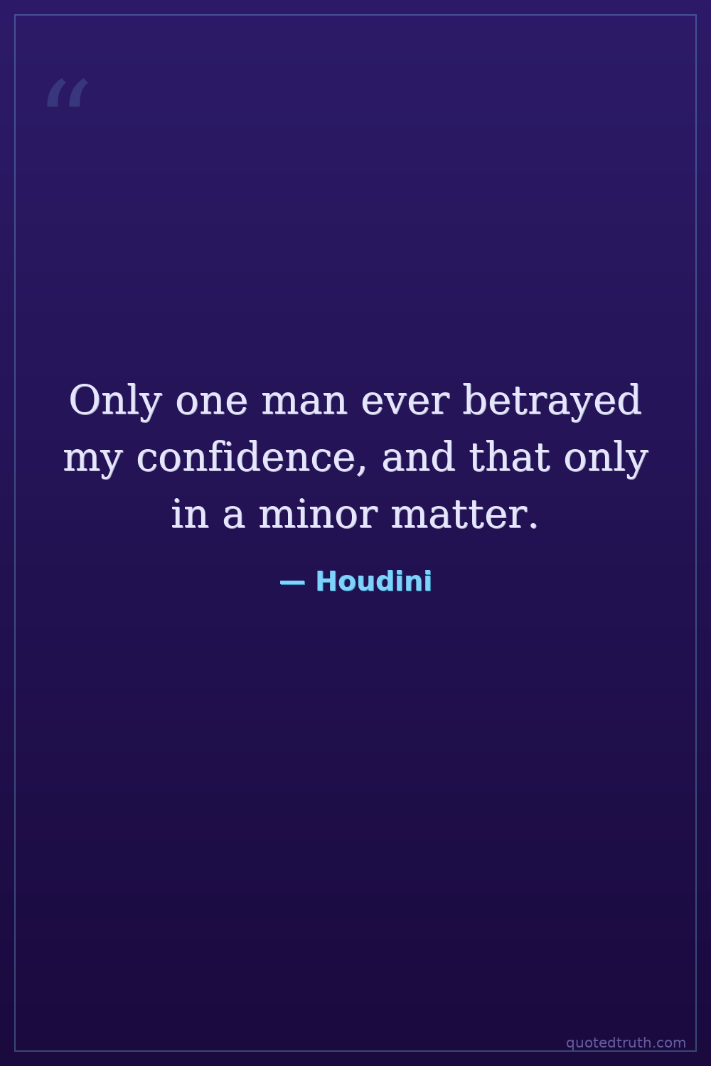 Only one man ever betrayed my confidence, and that only in a minor matter.