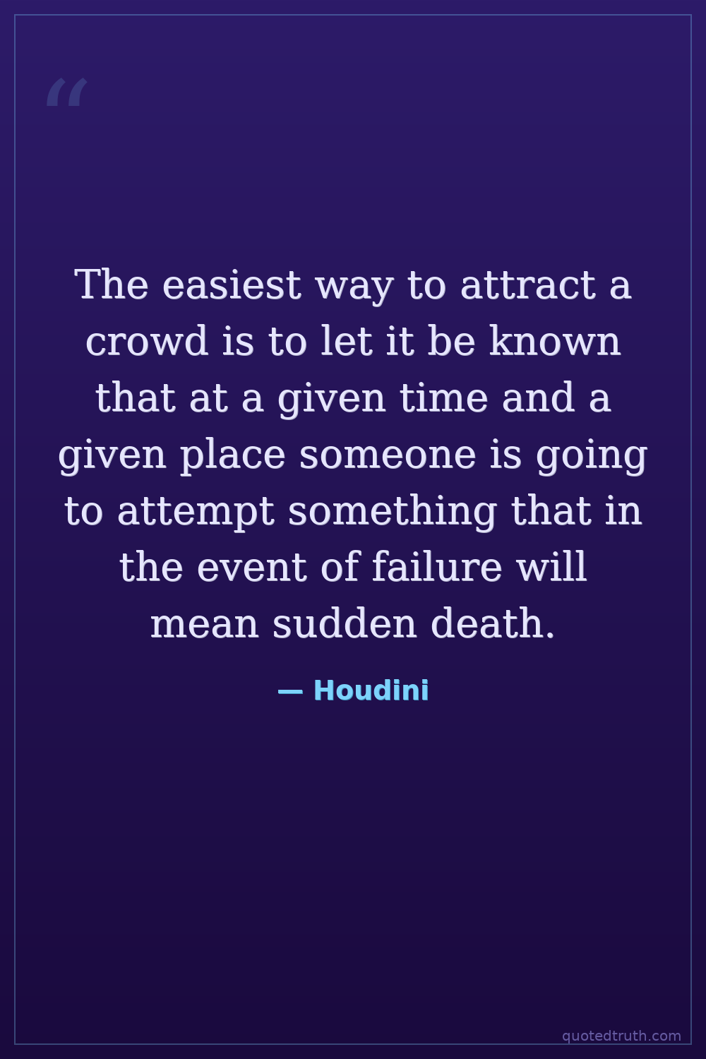 The easiest way to attract a crowd is to let it be known that at a given time and a given place someone is going to attempt something that in the event of failure will mean sudden death.