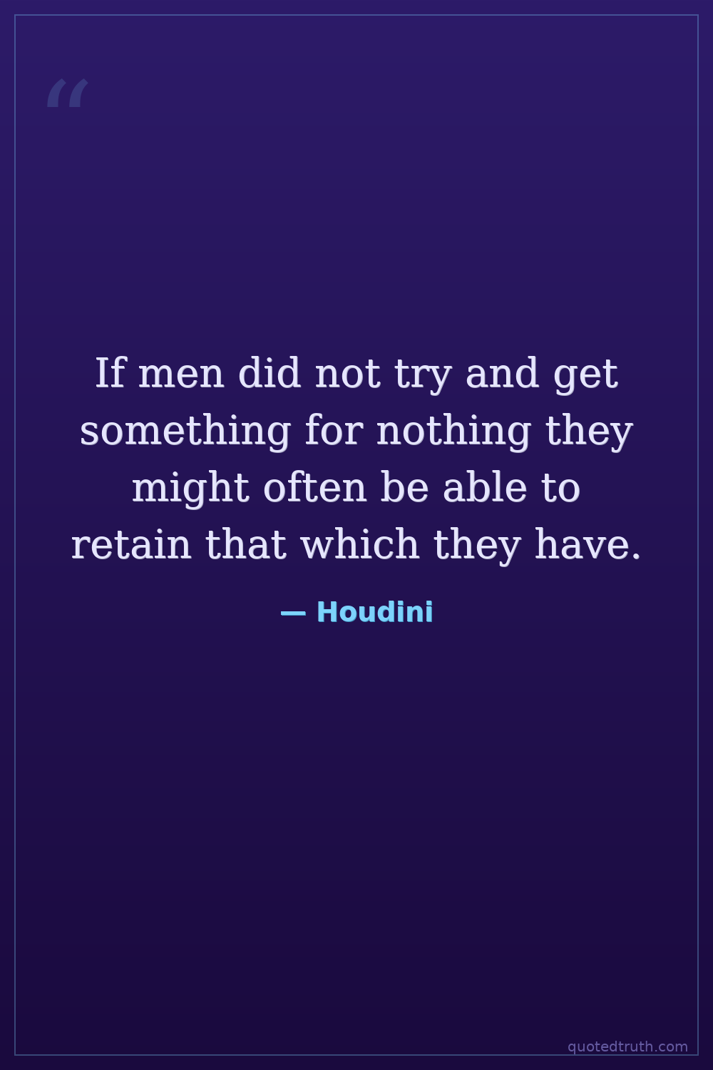 If men did not try and get something for nothing they might often be able to retain that which they have.