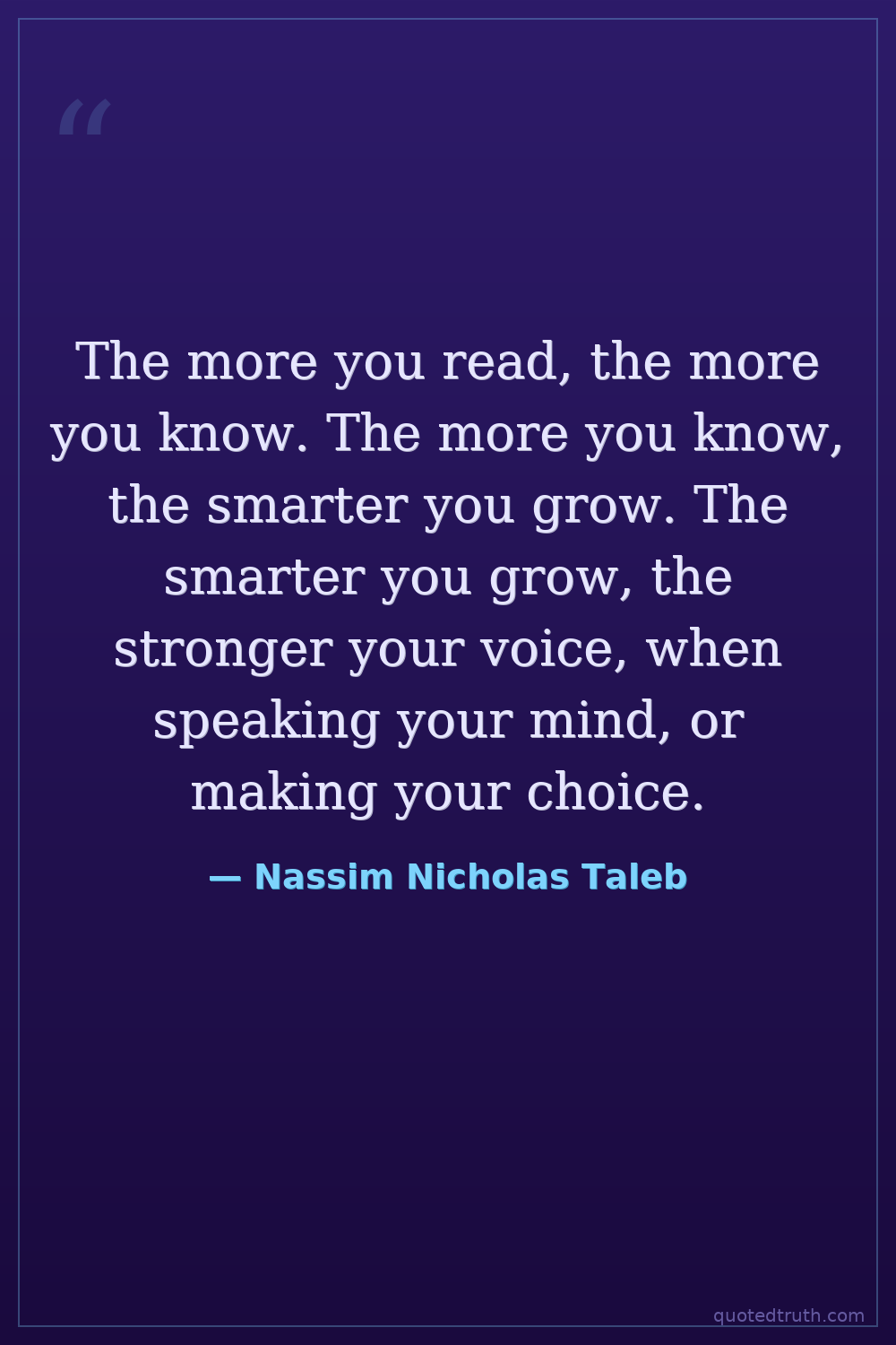 The more you read, the more you know. The more you know, the smarter you grow. The smarter you grow, the stronger your voice, when speaking your mind, or making your choice.