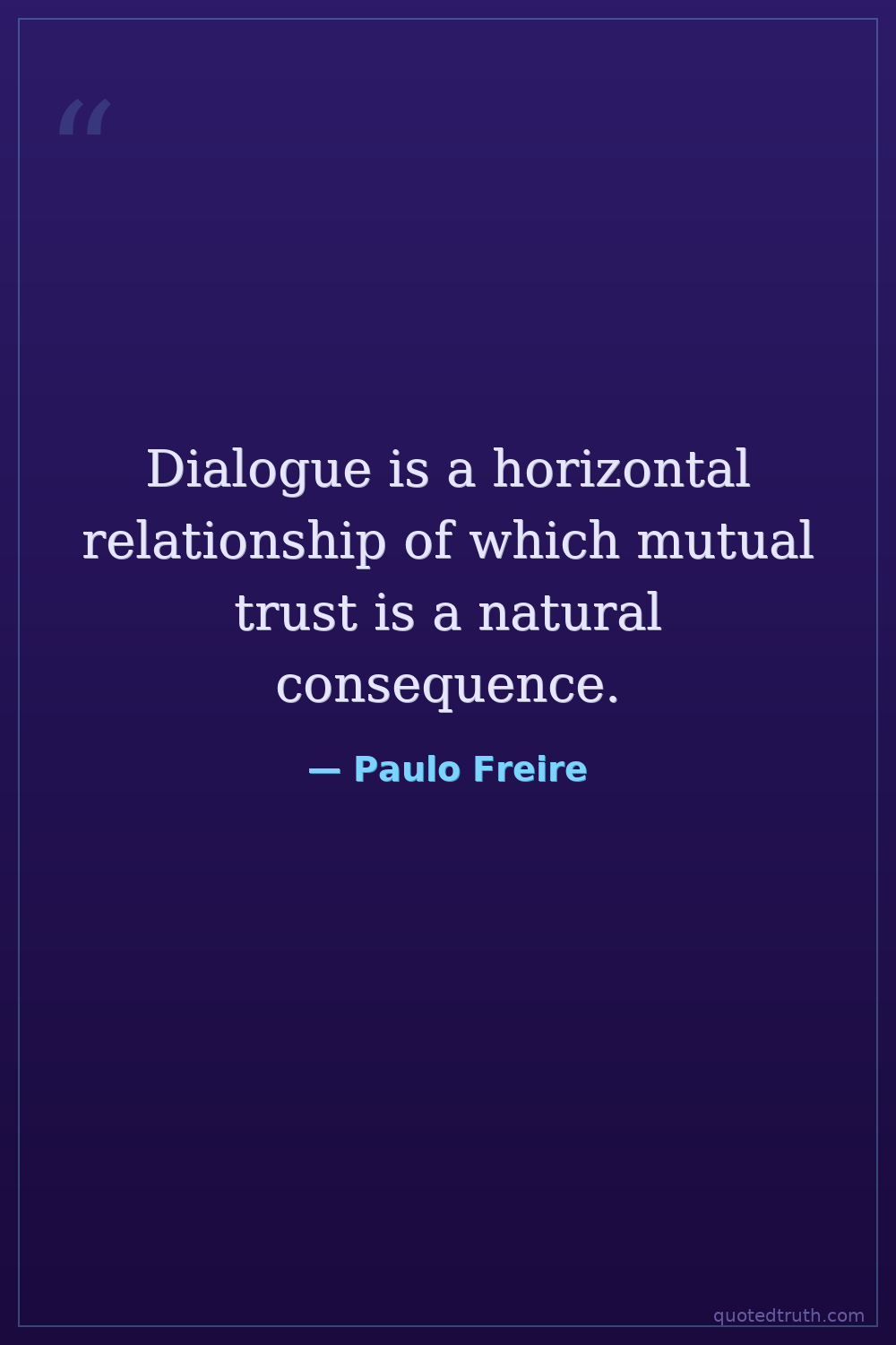 Dialogue is a horizontal relationship of which mutual trust is a natural consequence.