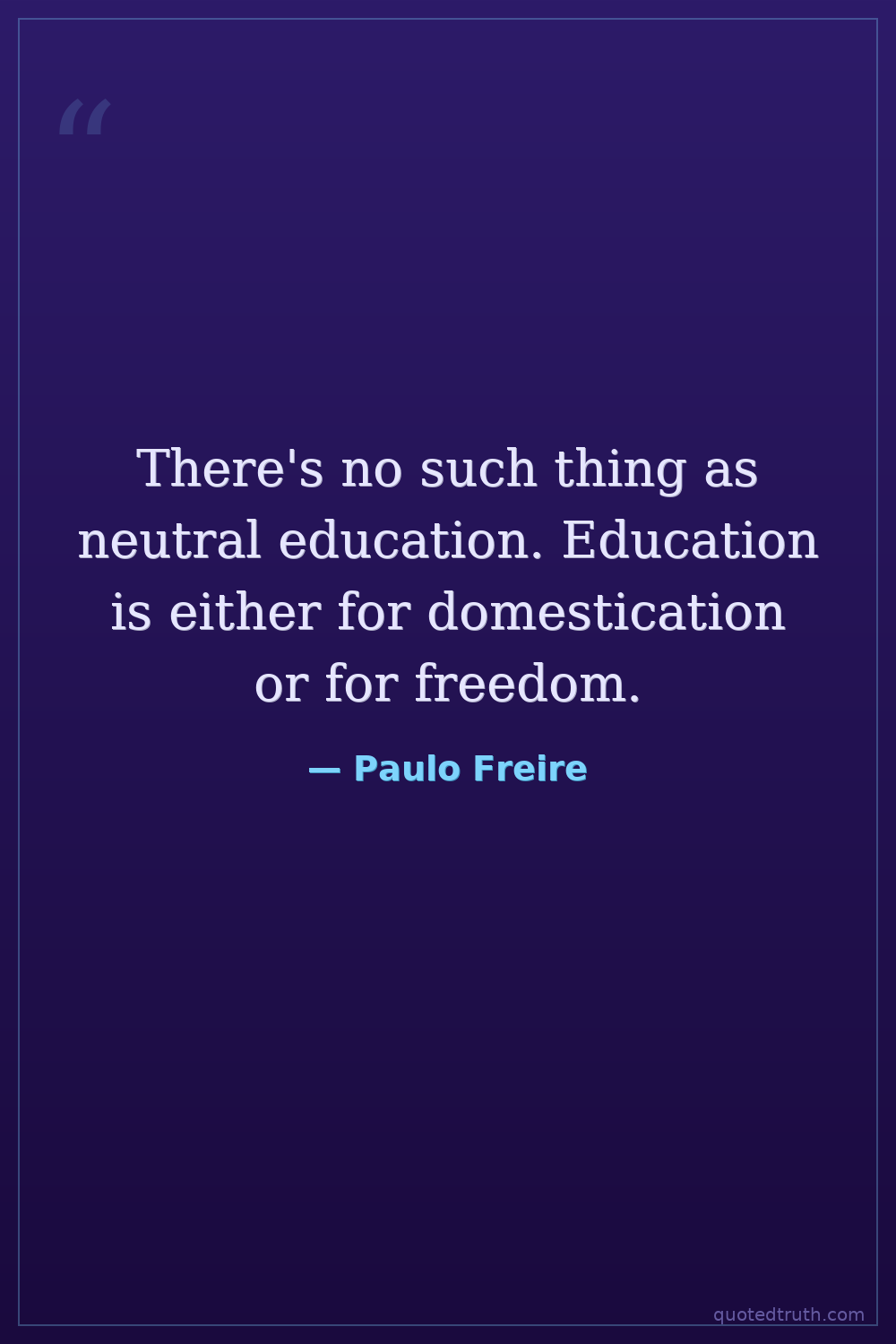 There's no such thing as neutral education. Education is either for domestication or for freedom.