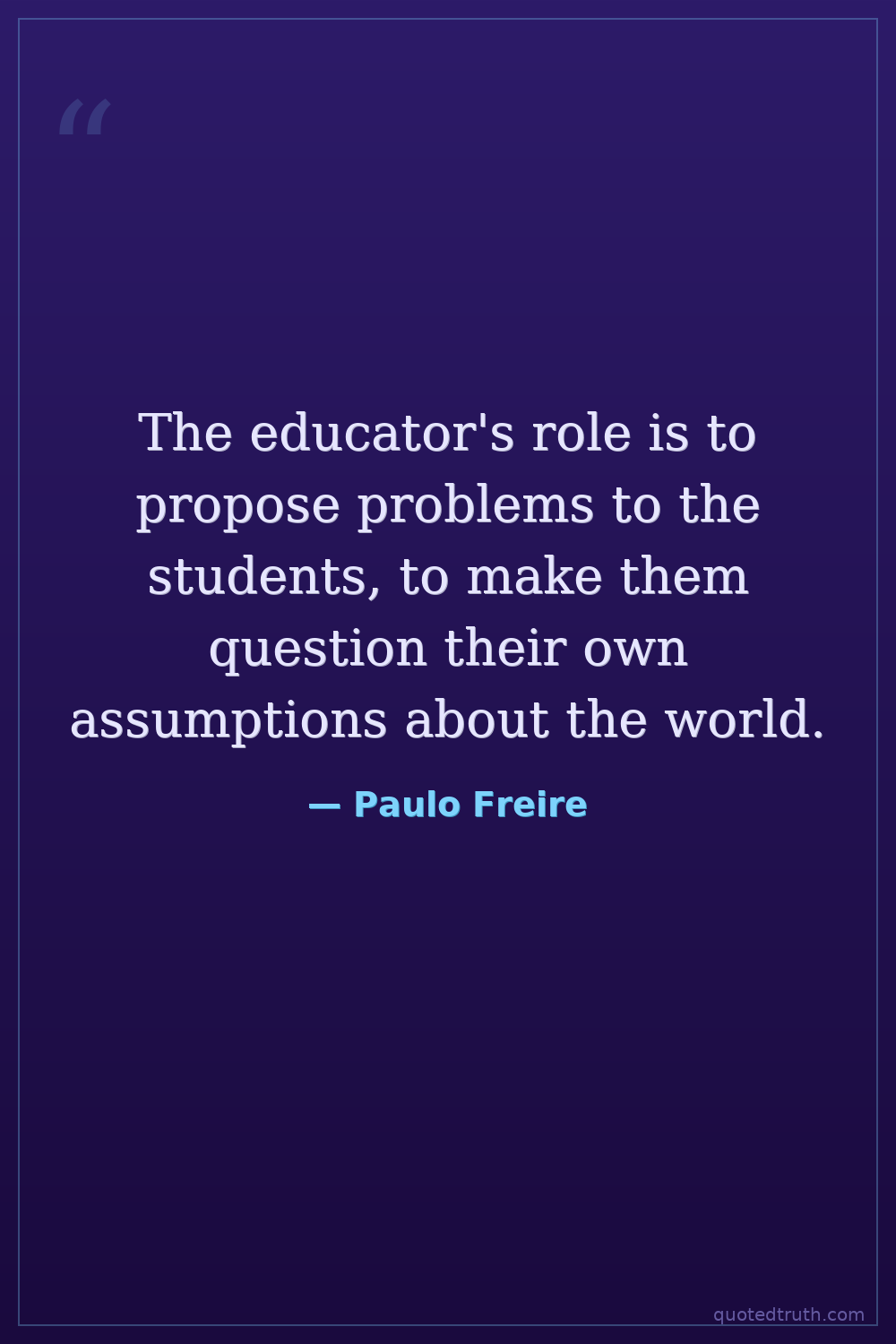 The educator's role is to propose problems to the students, to make them question their own assumptions about the world.